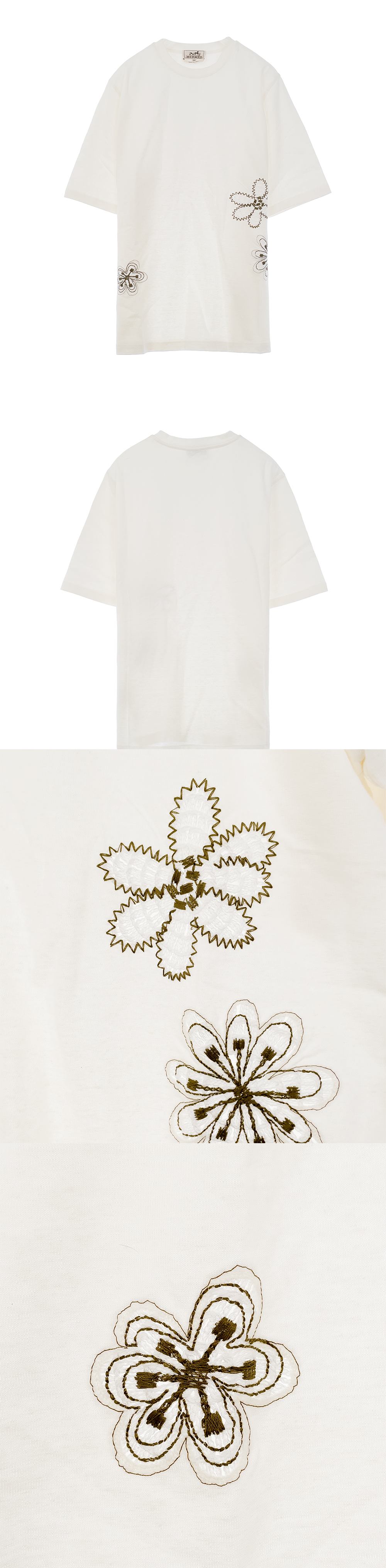 에르메스 플라워 자수 숏슬리브 티셔츠 XXS 에크루