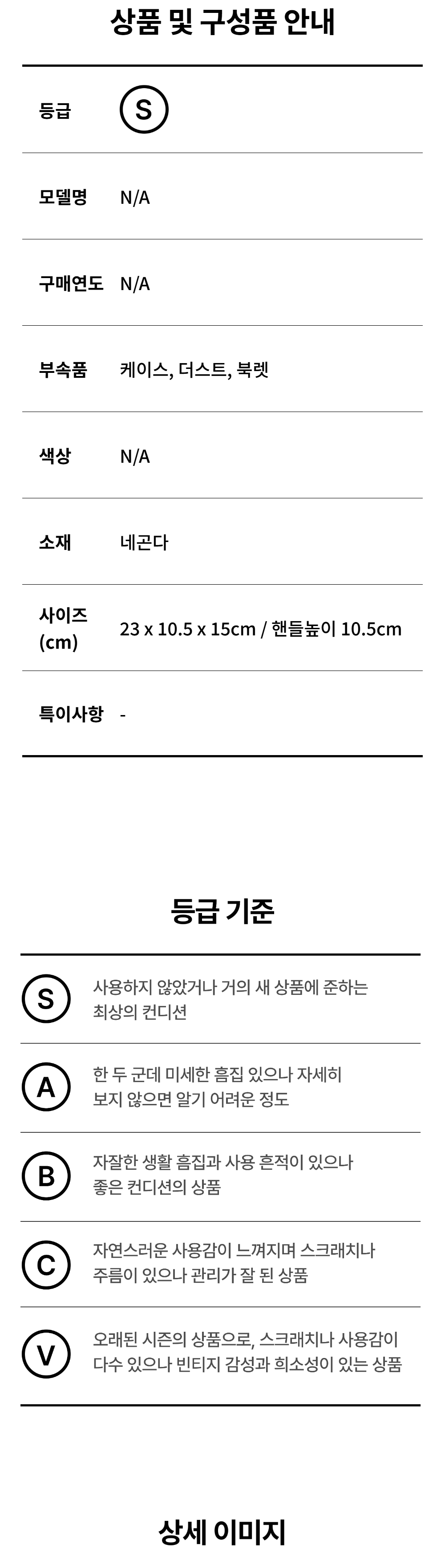 모든 상품(가죽, 의류, 잡화, 슈즈 등)은 사용자의 사용방법과 환경에 따라 변형, 변색이 될 수 있으니 반드시 취급 라벨에 표시된 관리 안내를 따르시길 권장 드립니다. 이는 정도의 차이가 있으며 과도한 체열과 땀, 습기, 빛, 마찰은 제품의 손상 및 변형을 일으킬 수 있으므로 주의하시길 바랍니다.