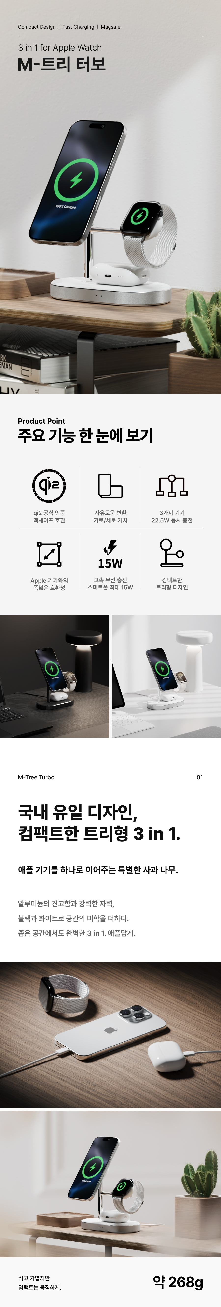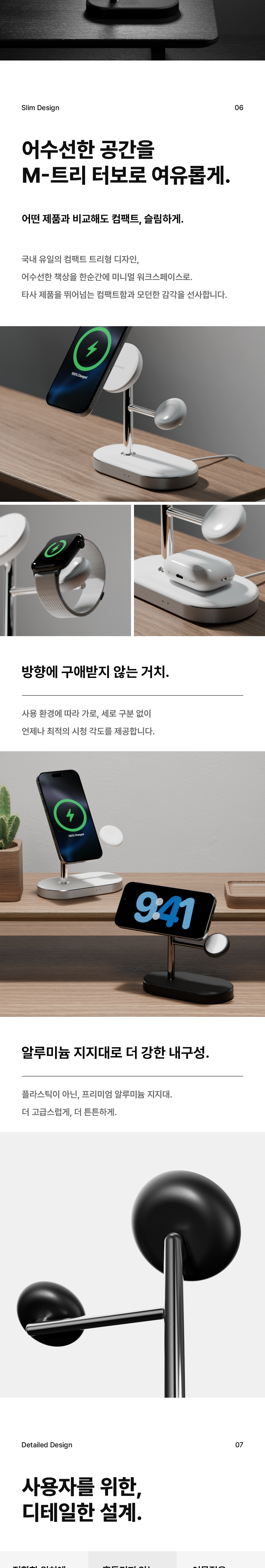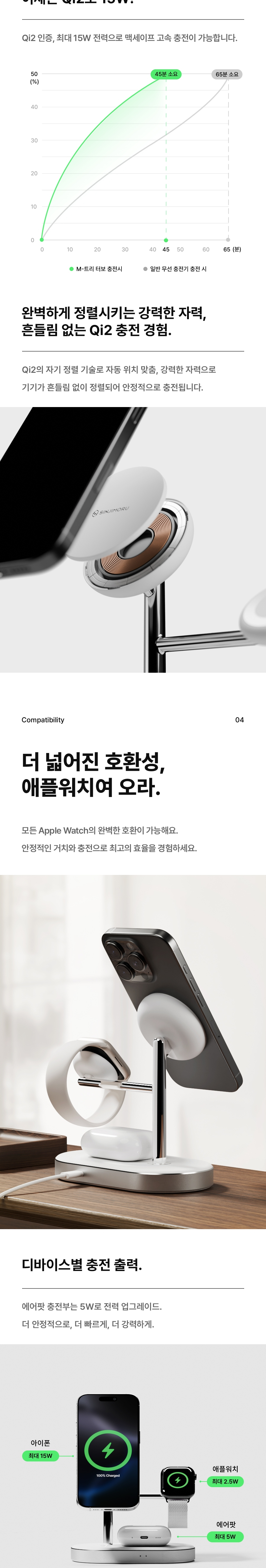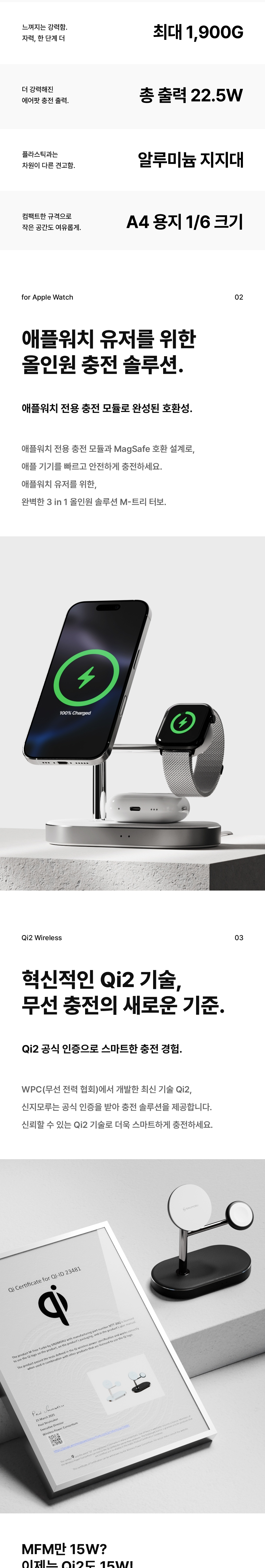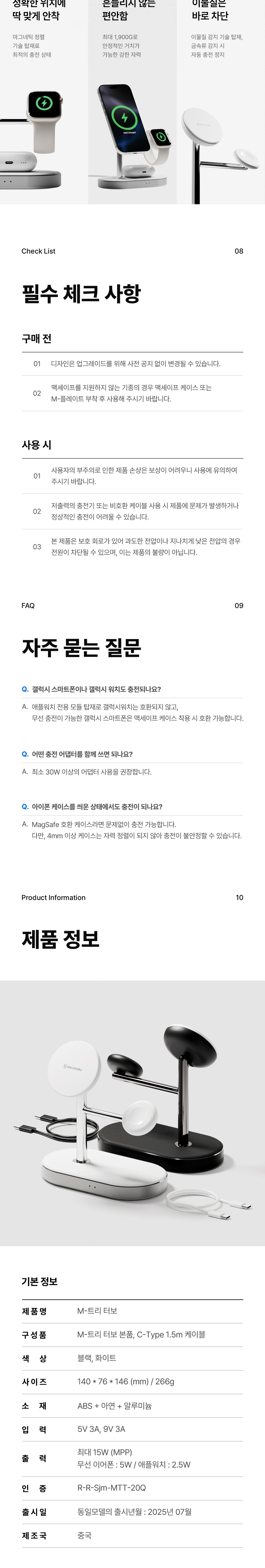 신지모루 M 트리터보 Qi2 3in1 맥세이프 15W 무선 고속 충전기 멀티 스탠드 거치대 블랙