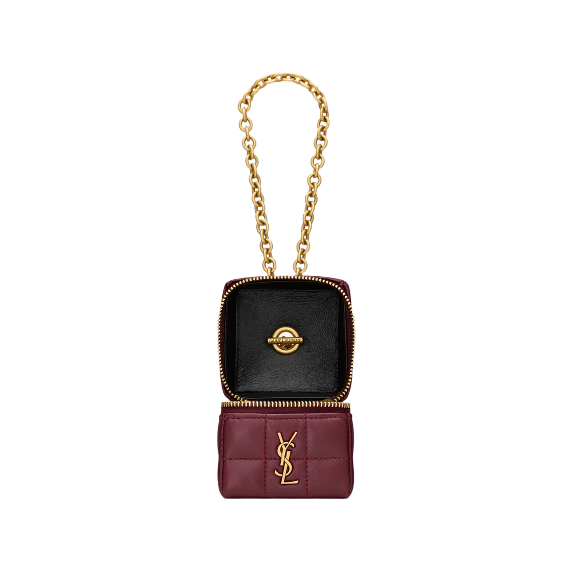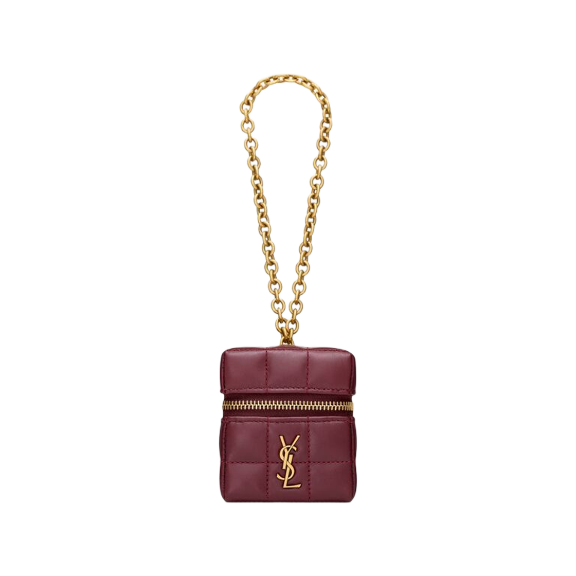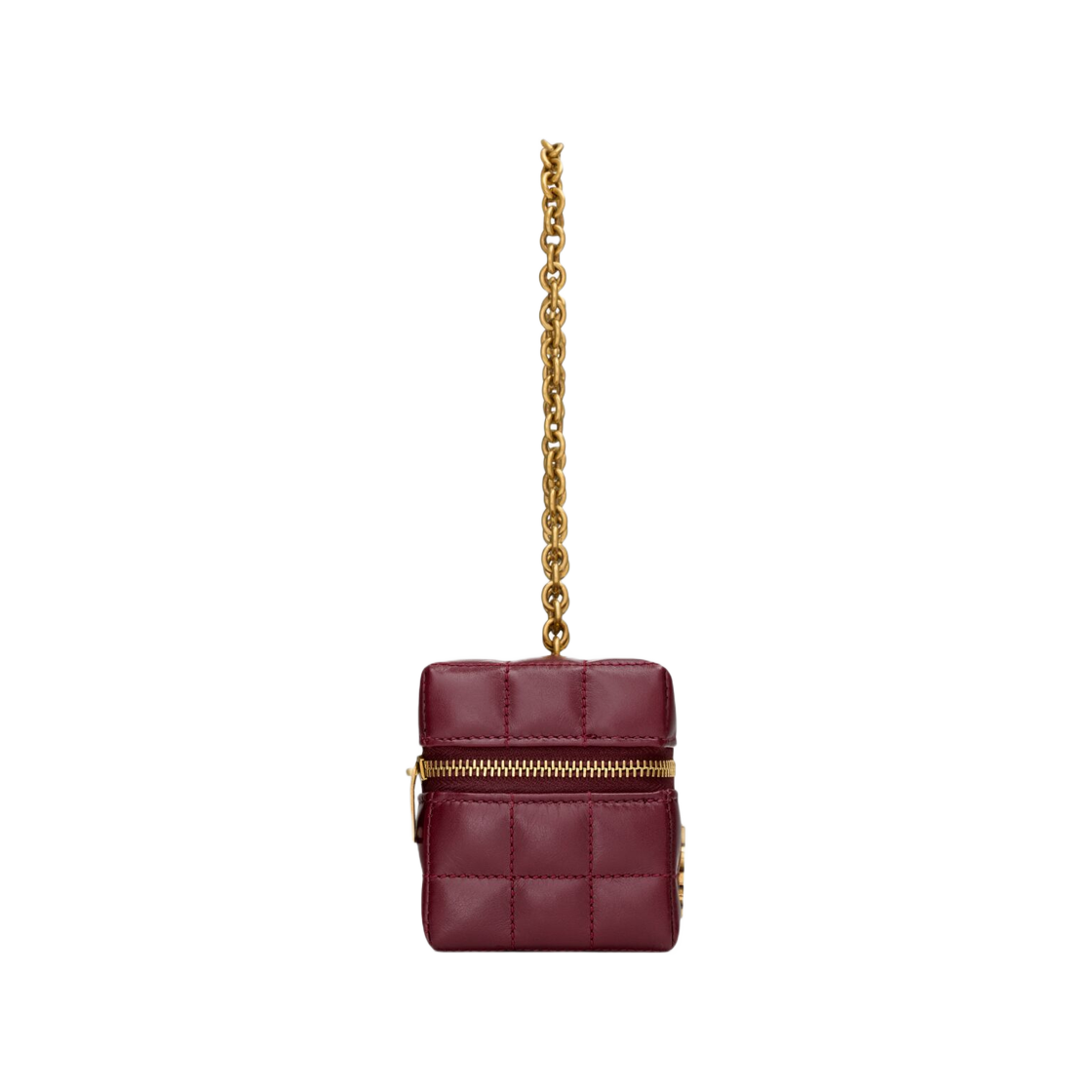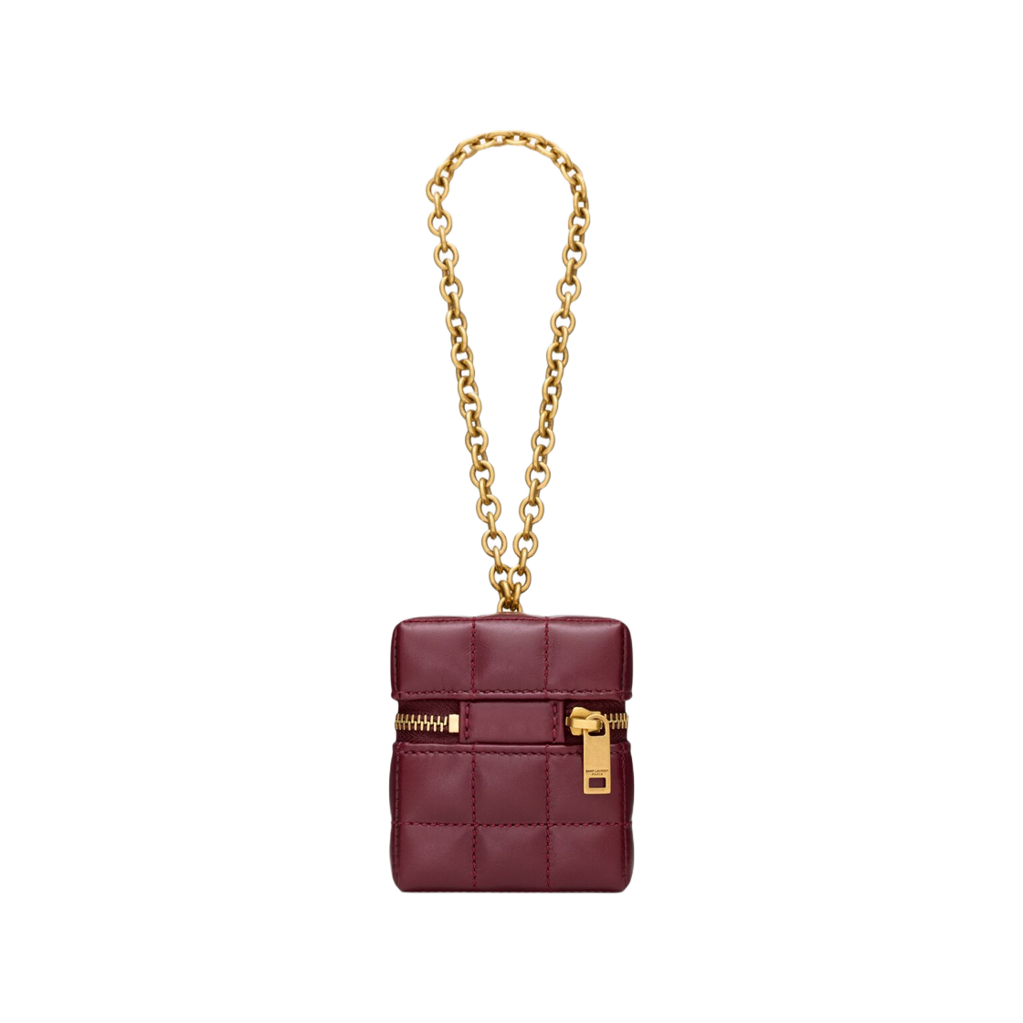 Saint Laurent Cassandre Matelasse Carre Mini Cube On Chain in Shiny Leather Dark Ruby
