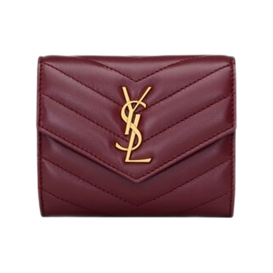 Saint Laurent Cassandre Multi-Fold Wallet in Lambskin Rouge Cabernet