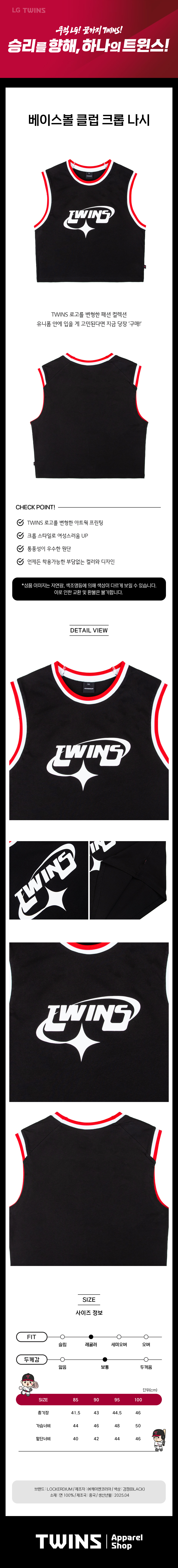 엘지 트윈스 컬렉션 베이스볼 클럽 크롭 나시