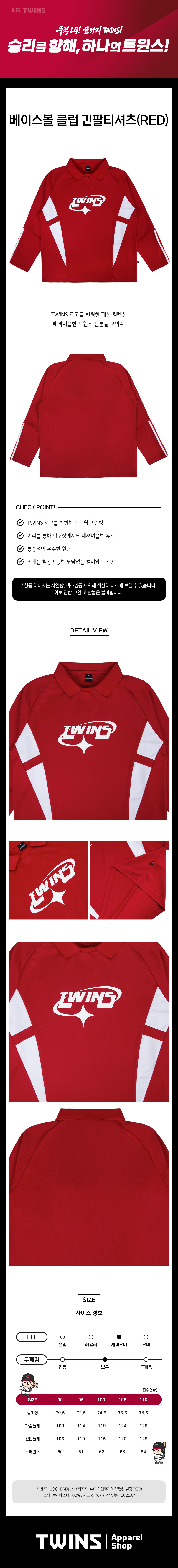 엘지 트윈스 컬렉션 베이스볼 클럽 긴팔티셔츠 레드