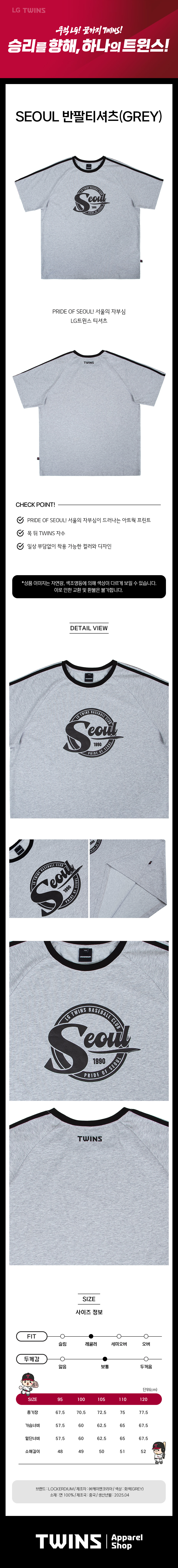 엘지 트윈스 컬렉션 PRIDE OF SEOUL 반팔티셔츠 그레이