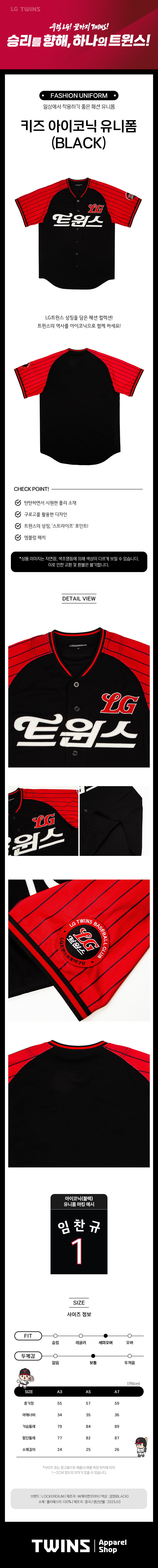 엘지 트윈스 컬렉션 키즈 아이코닉 유니폼 블랙