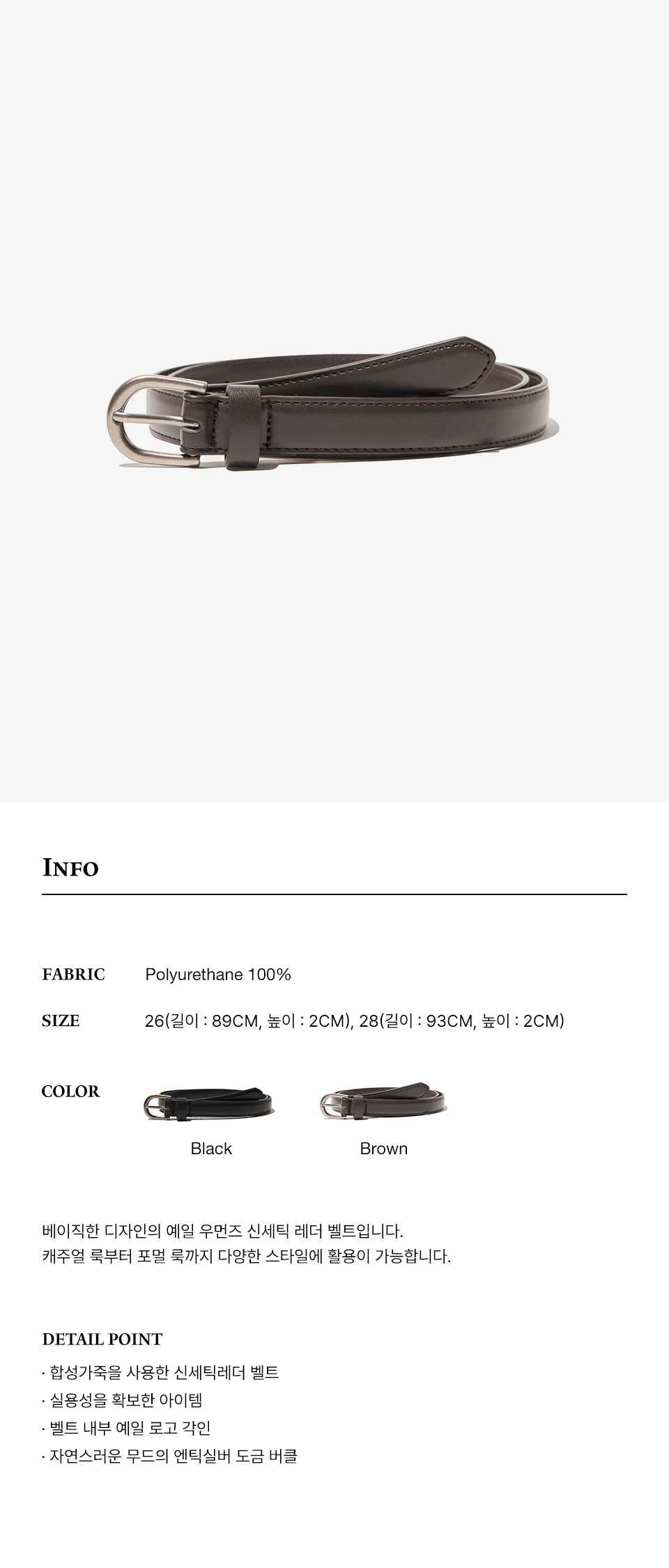 예일 우먼즈 신세틱 레더 클래식 벨트_브라운