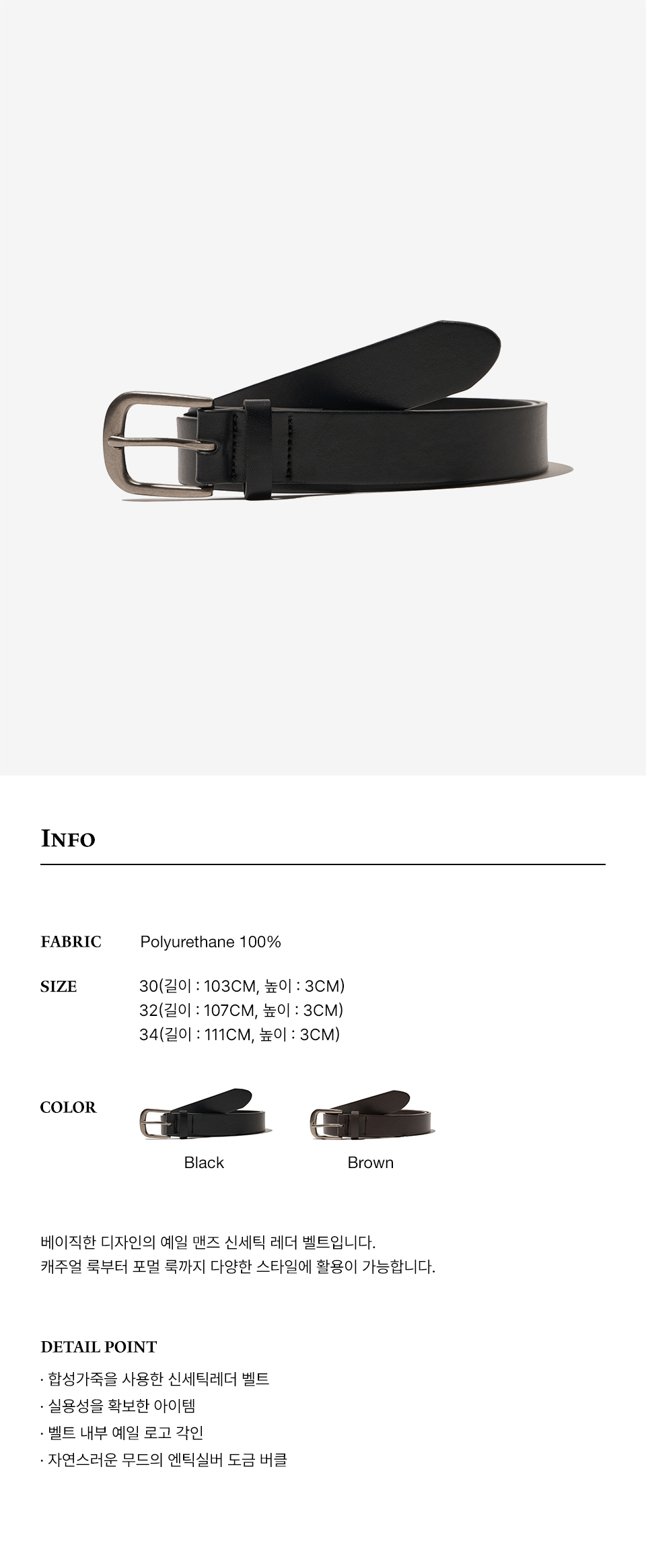 예일 맨즈 신세틱 레더 클래식 벨트_블랙