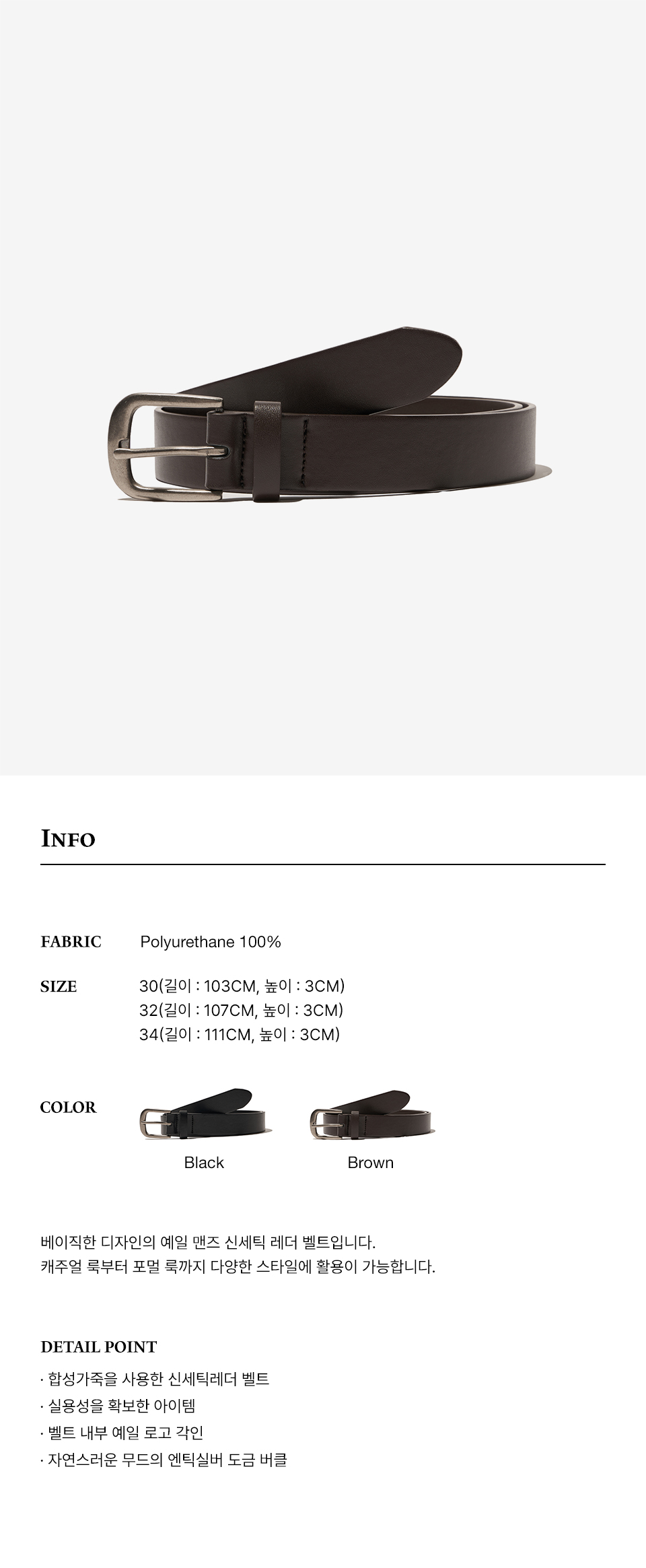 예일 맨즈 신세틱 레더 클래식 벨트_브라운