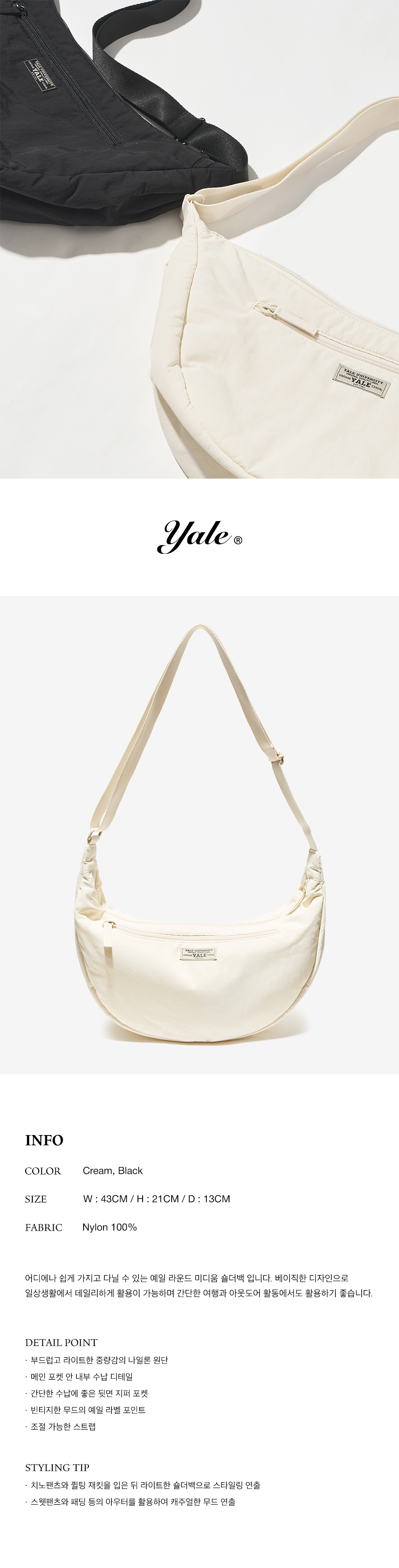 예일 라운드 숄더 미디엄 백_크림