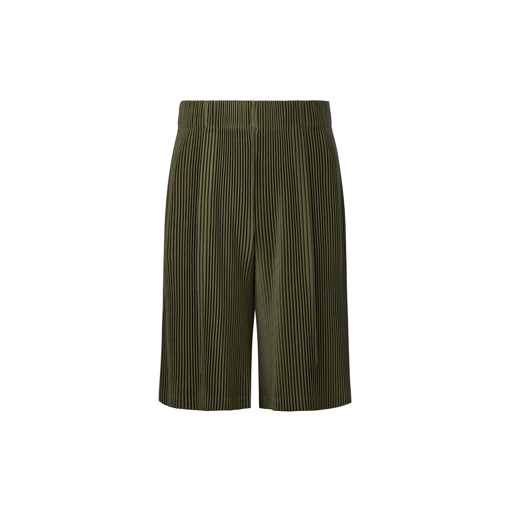 몽플리쎄 공용 턱 포인트 플리츠 쇼츠 카키