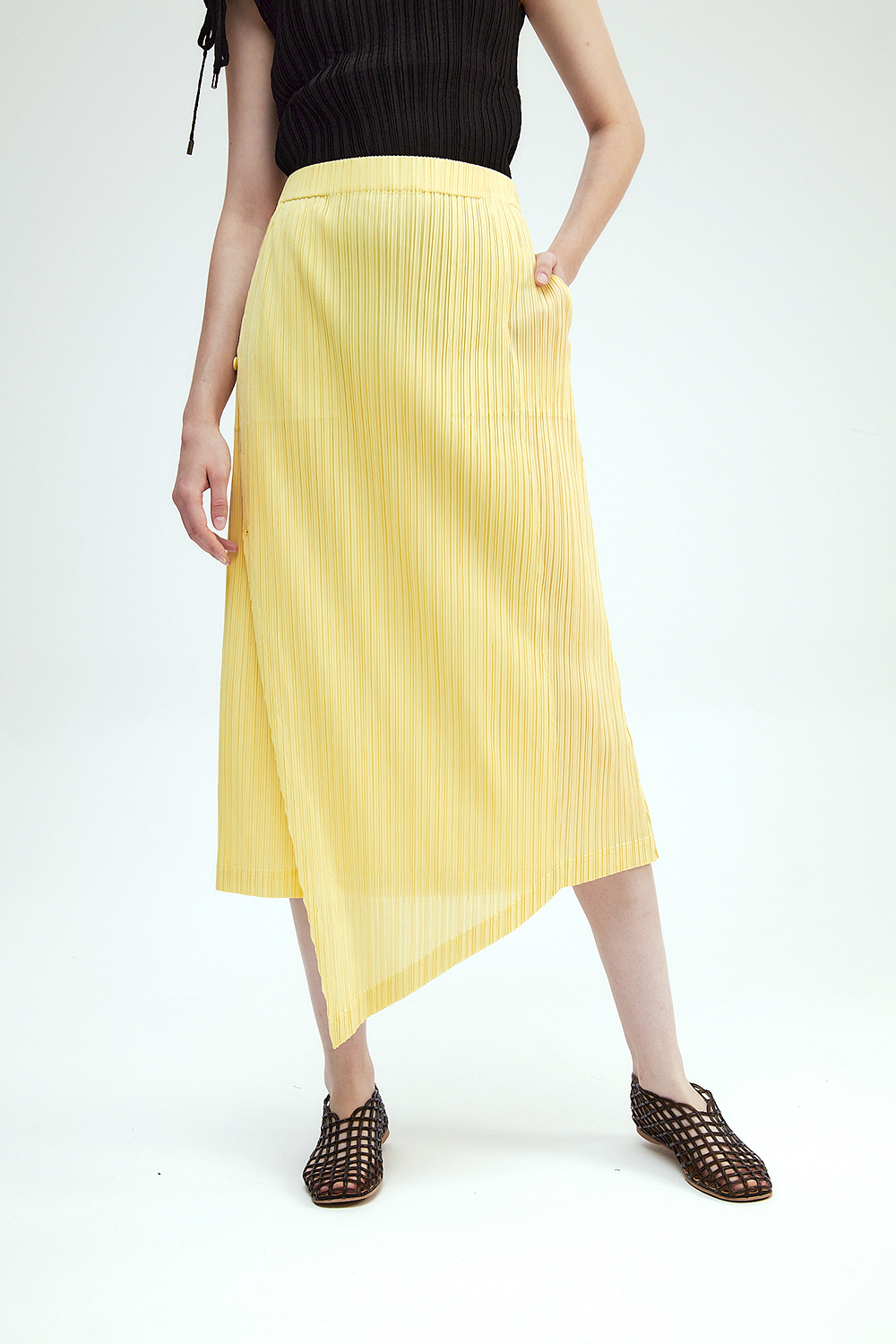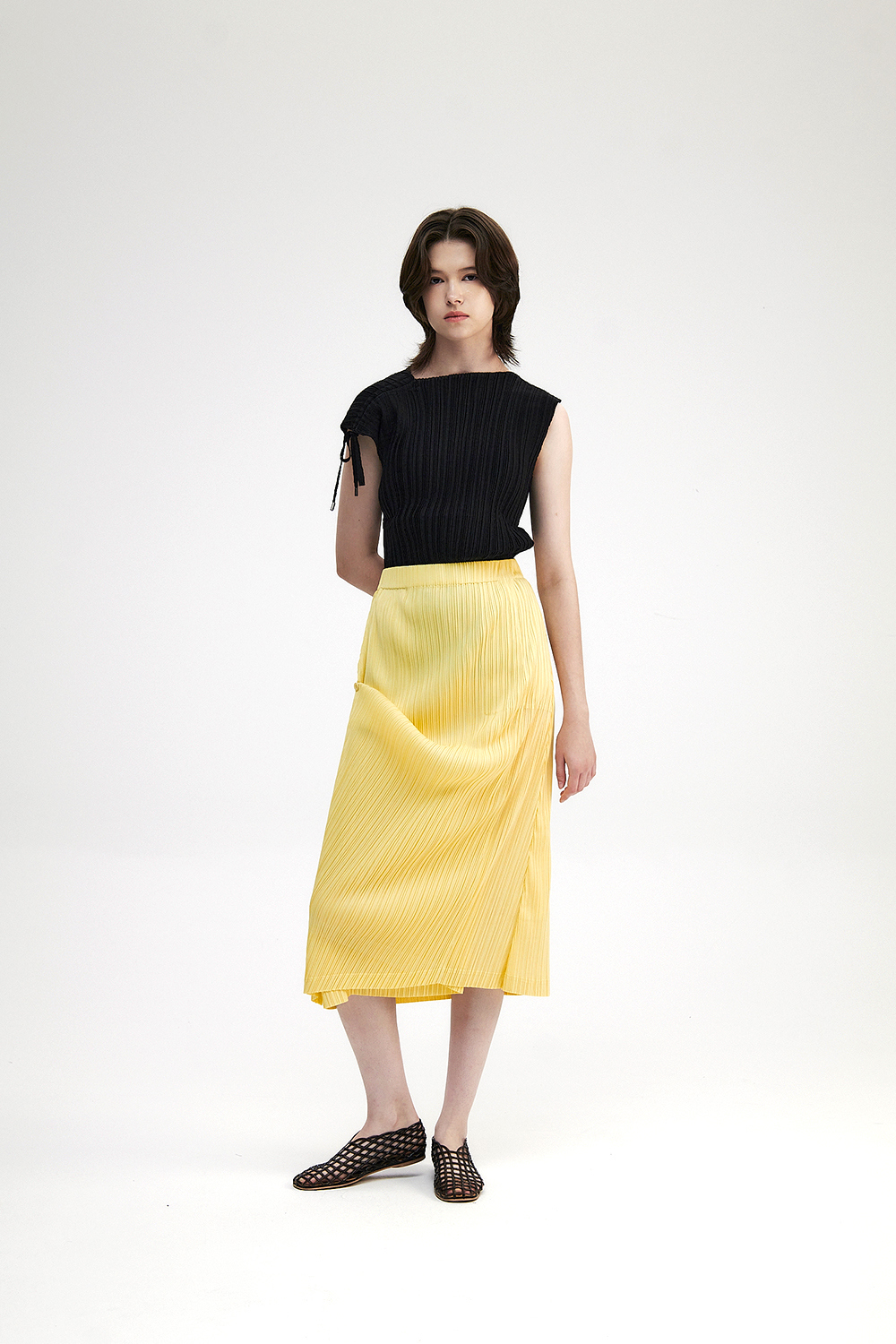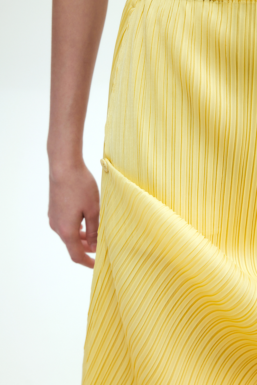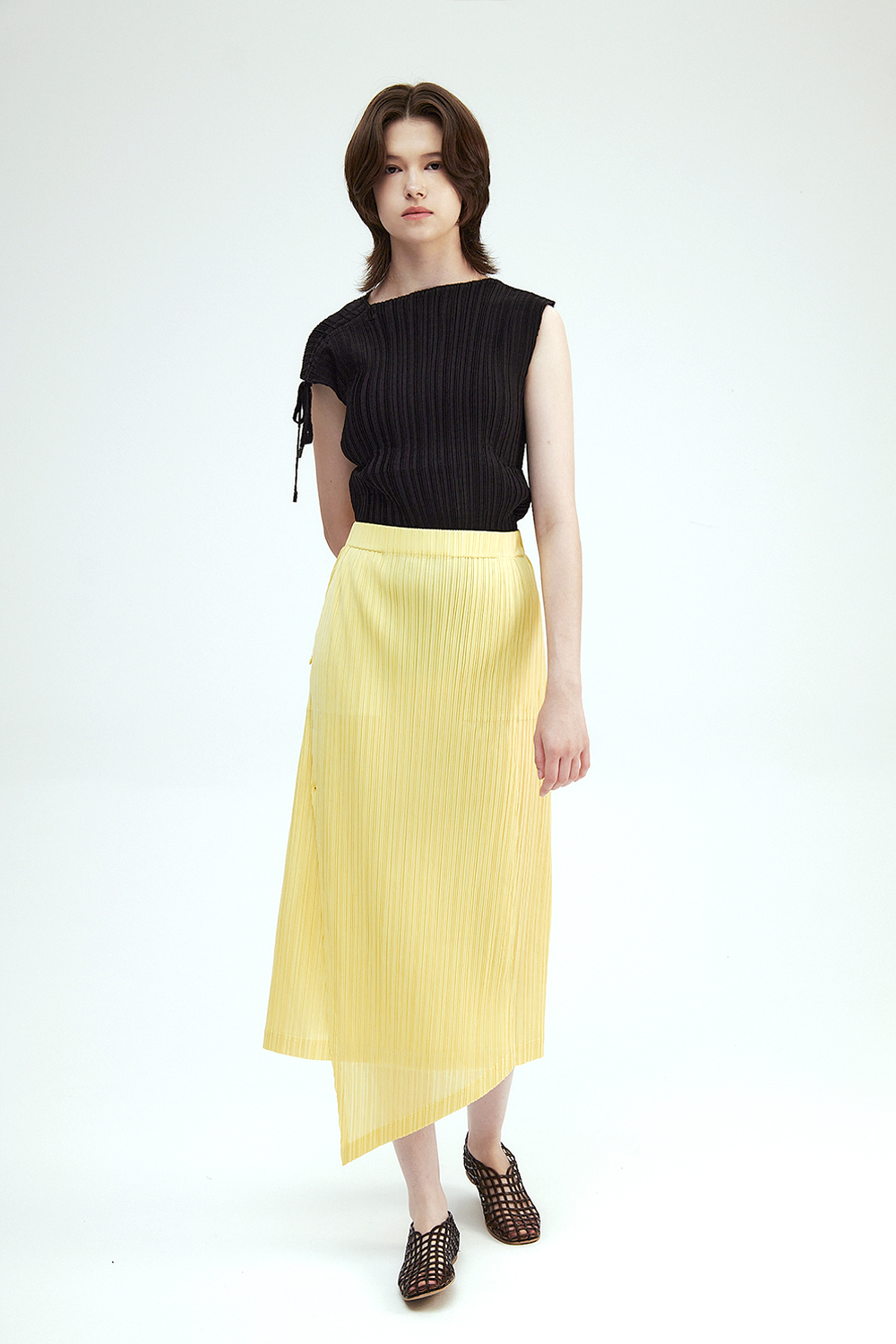 몽플리쎄 여성 버튼 투웨이 플레어 플리츠 스커트 옐로우