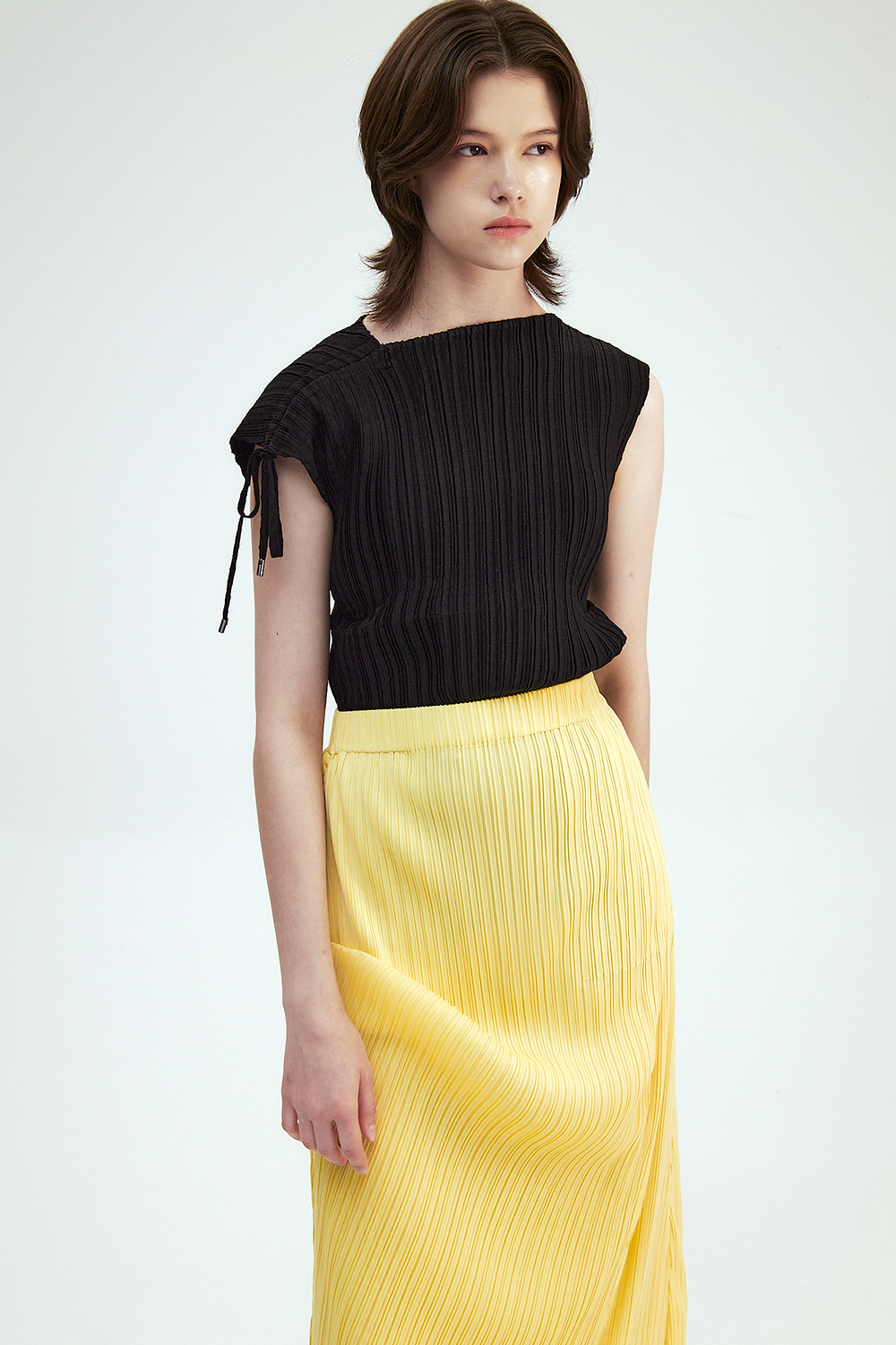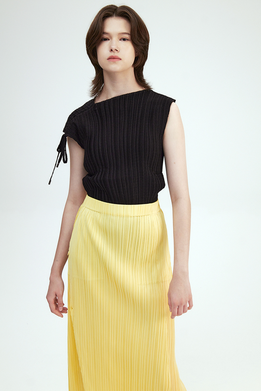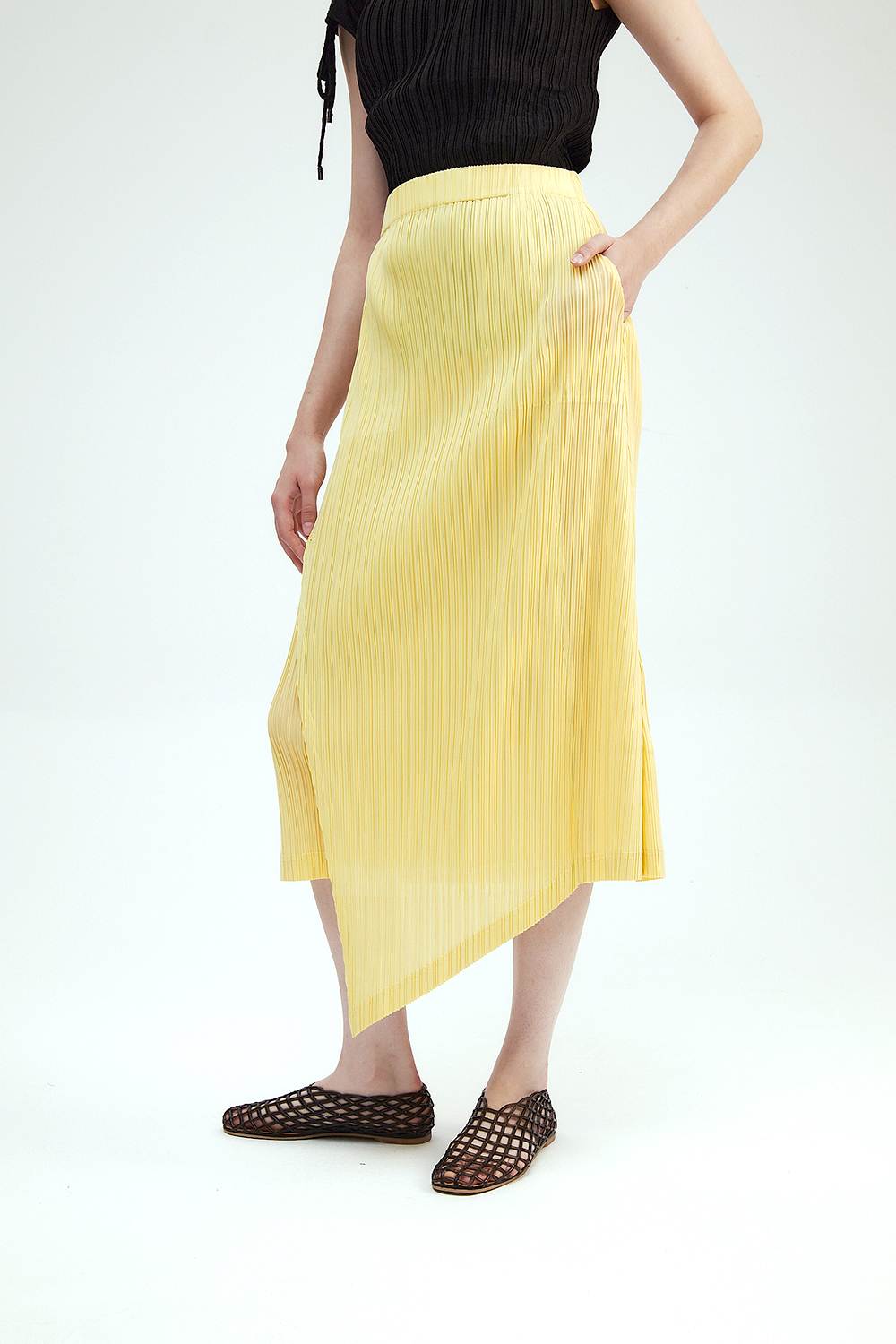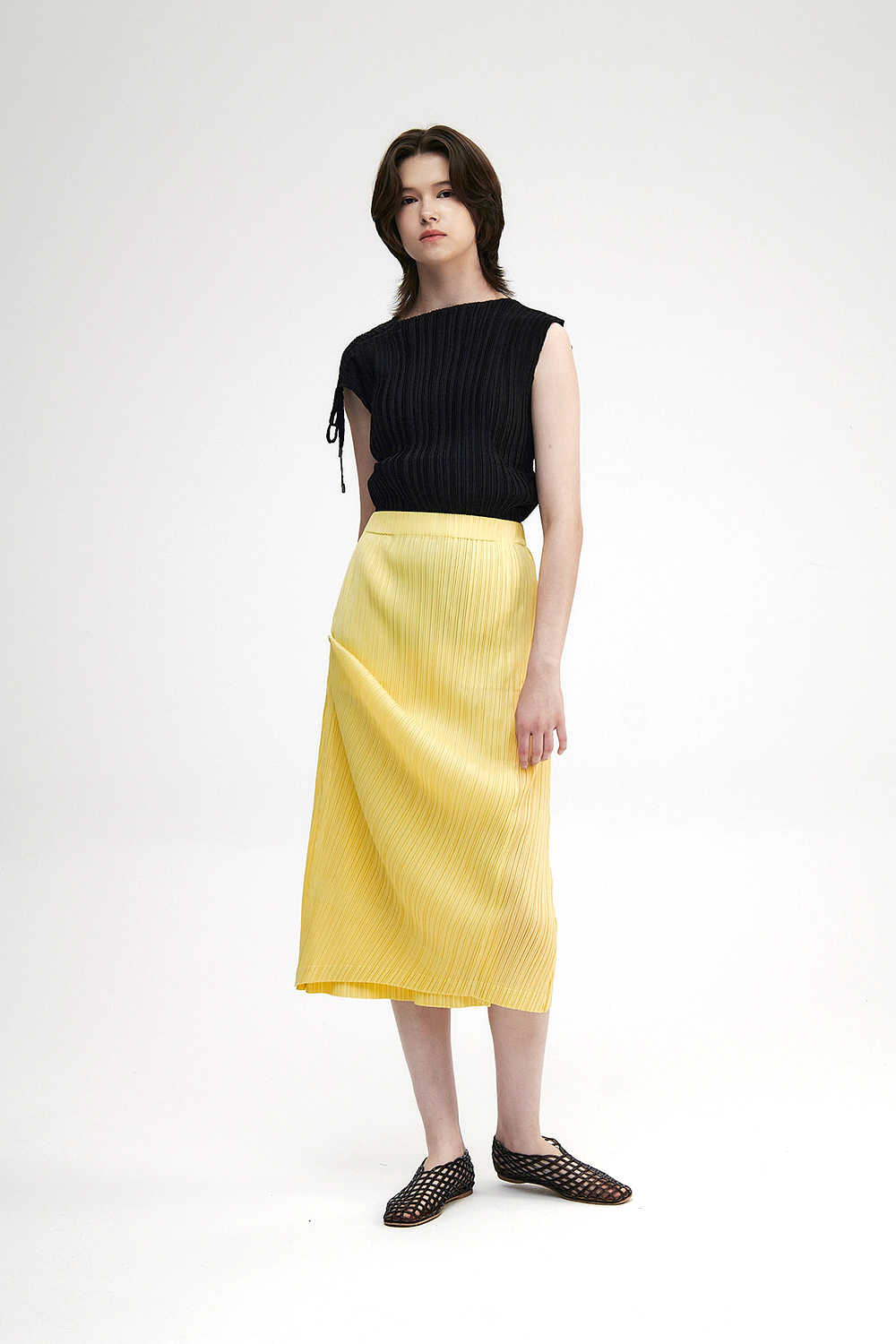 몽플리쎄 여성 버튼 투웨이 플레어 플리츠 스커트 옐로우