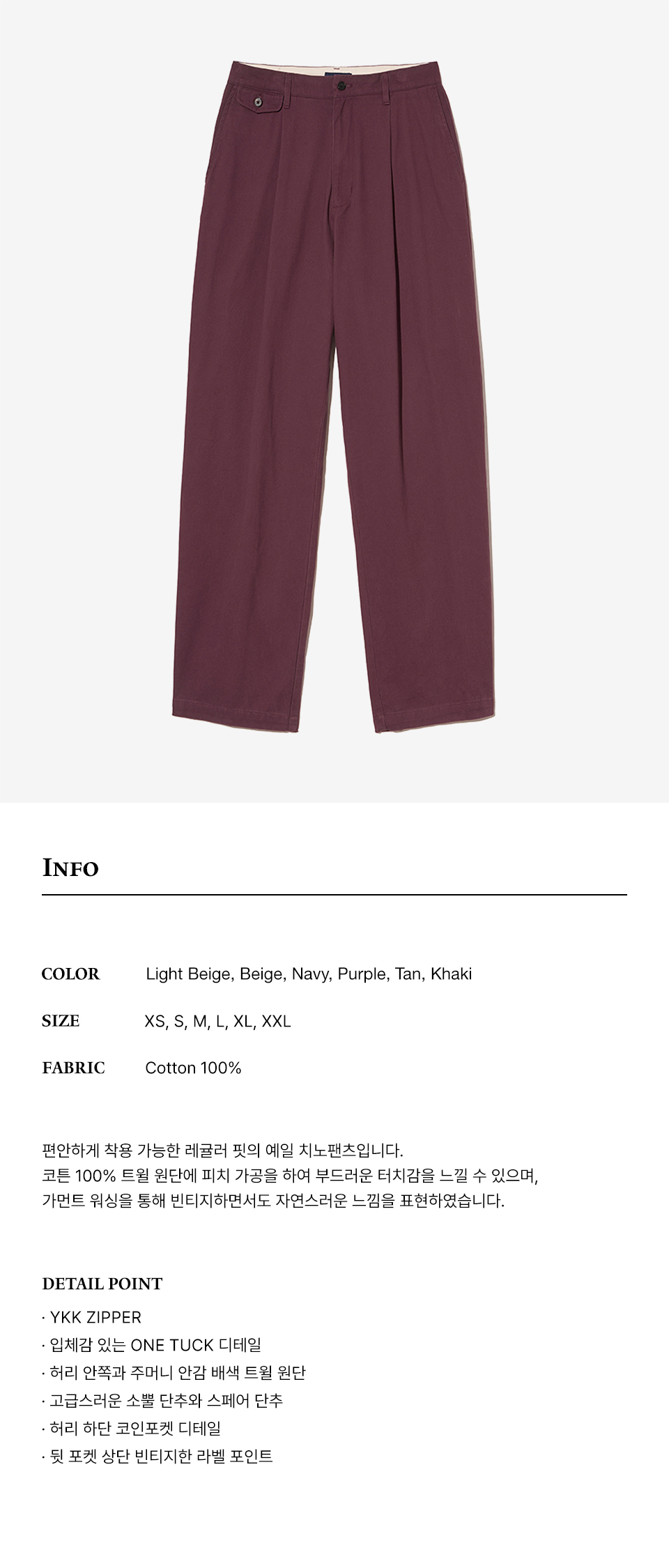 예일 프리미엄 빈티지 원 턱 코인 포켓 레귤러 치노팬츠_퍼플