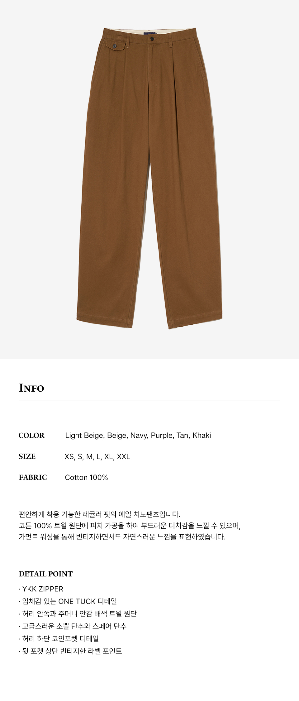 예일 프리미엄 빈티지 원 턱 코인 포켓 레귤러 치노팬츠_탄