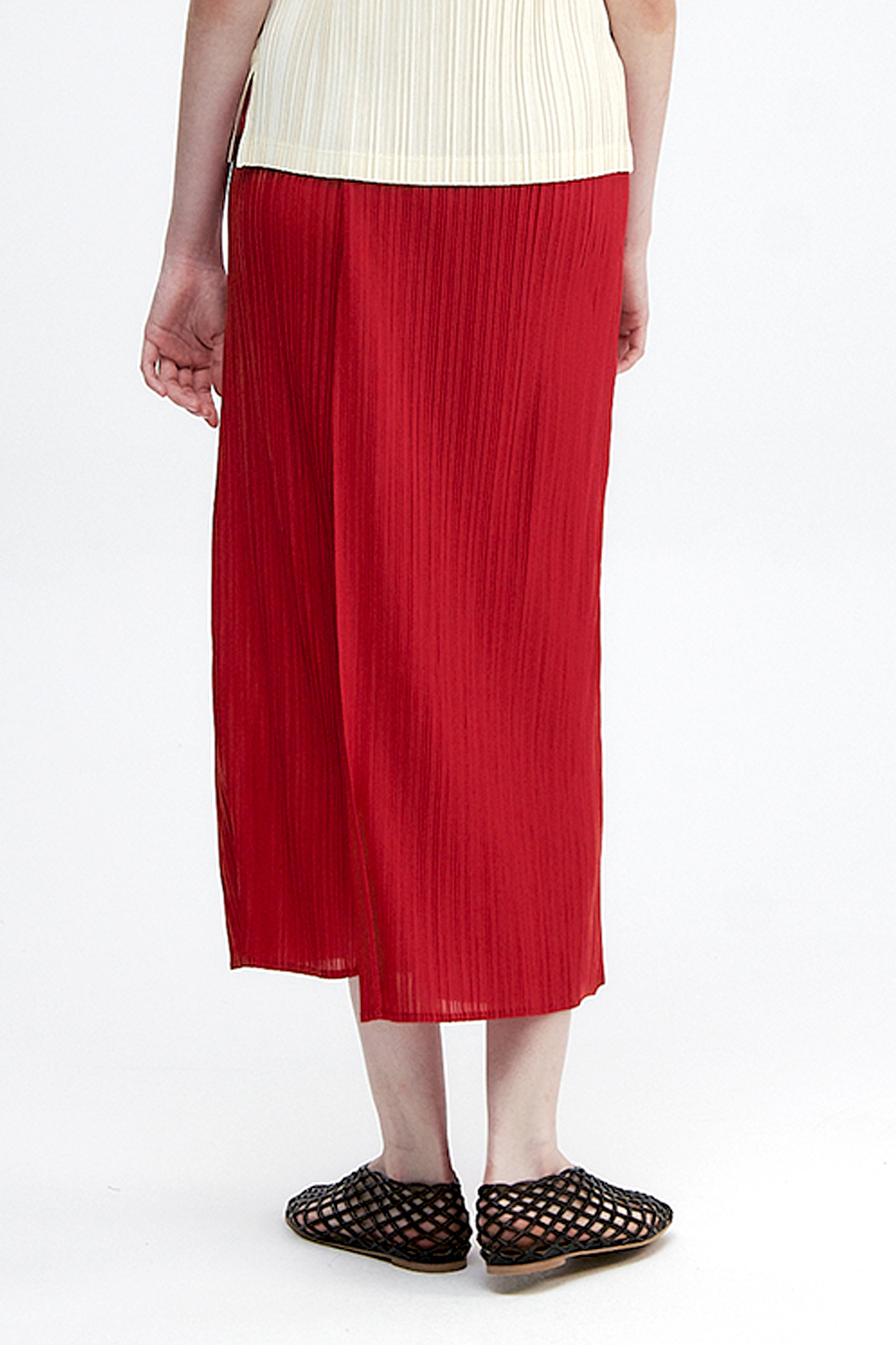 Monplisse Women Back Slit H-line Pleats Long Skirt Red