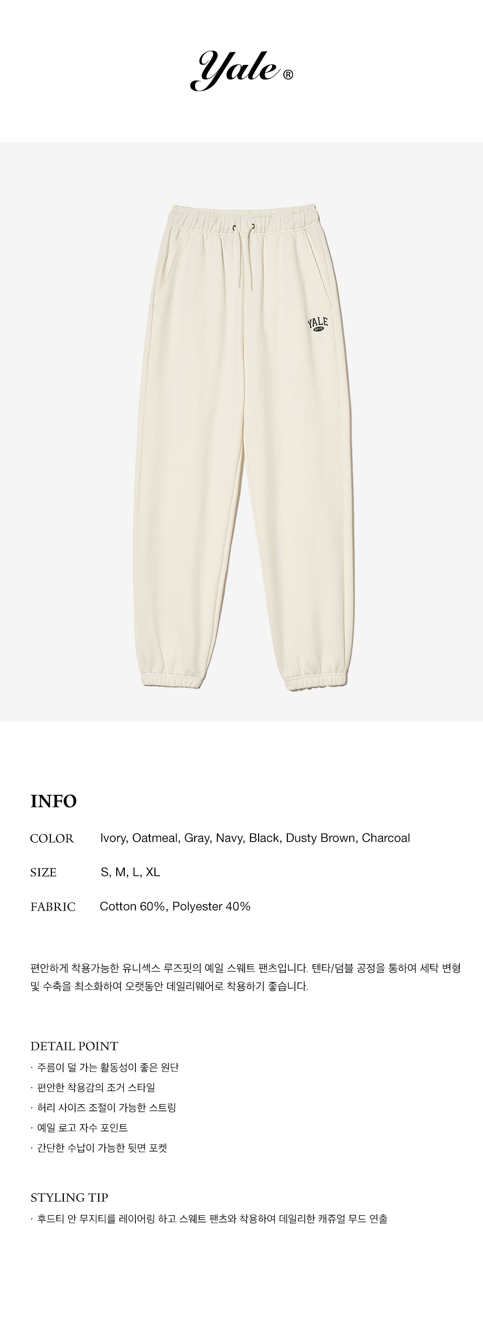 예일 스몰 투톤 아치 스웨트 팬츠_아이보리