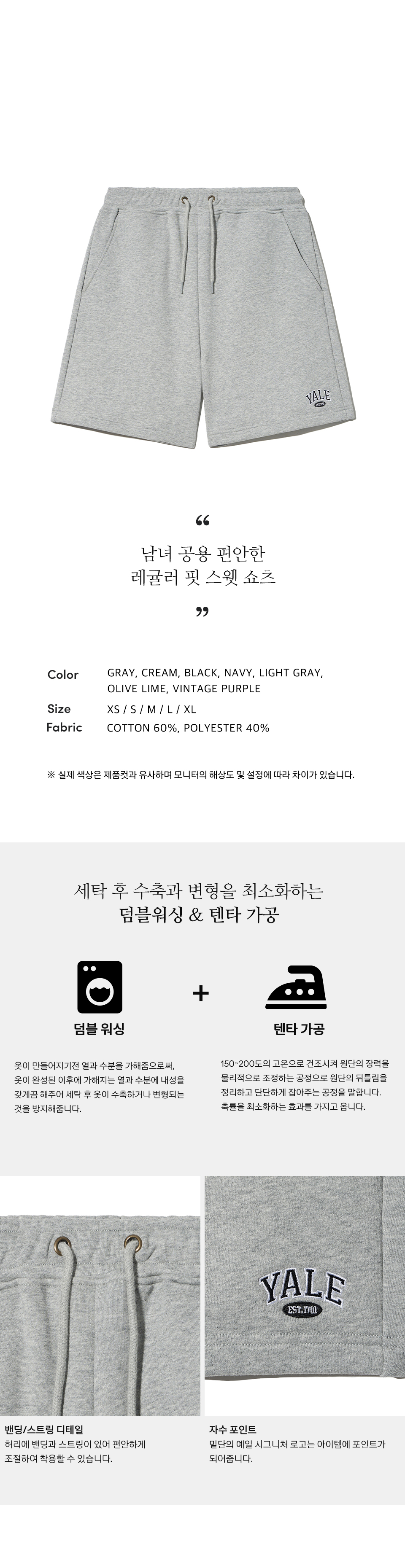 예일 스몰 투톤 아치 스웻쇼츠_멜란지 그레이