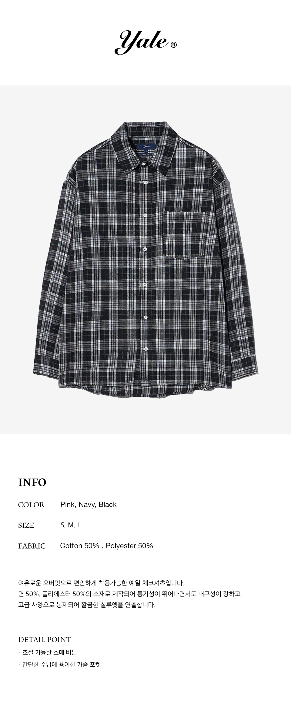 예일 플란넬 빈티지 오버핏 체크 셔츠_블랙