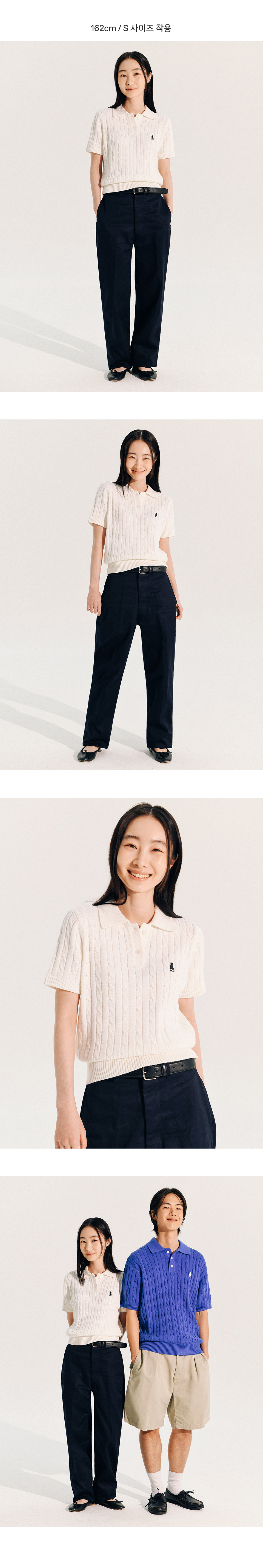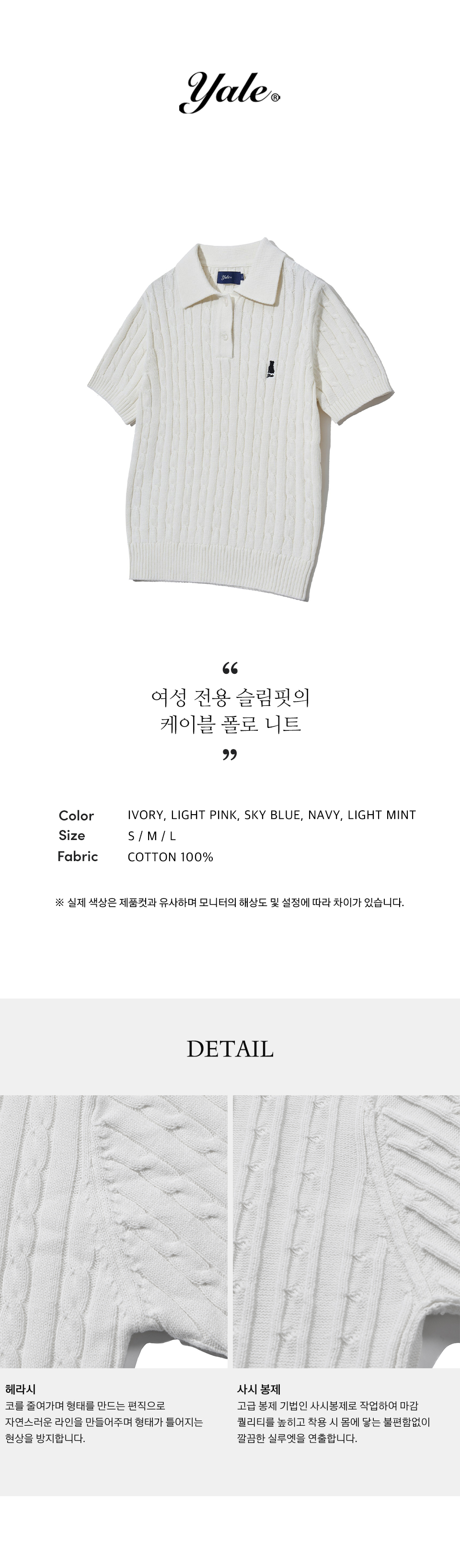 예일 우먼즈 헤리티지 댄 케이블 반팔 폴로 니트_아이보리
