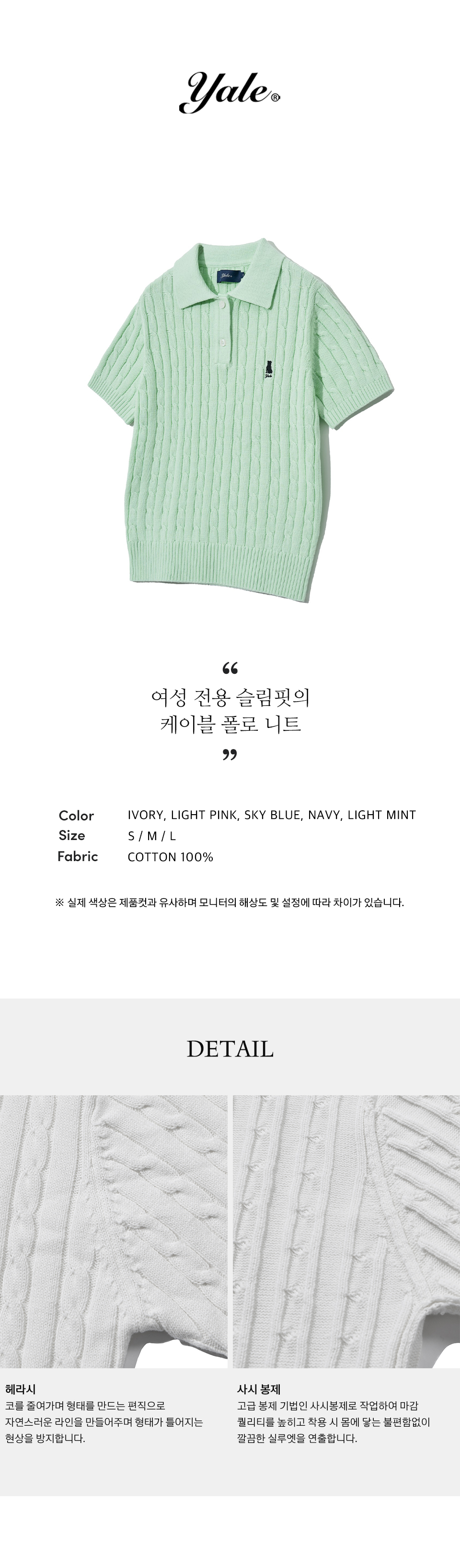 예일 우먼즈 헤리티지 댄 케이블 반팔 폴로 니트_라이트 민트
