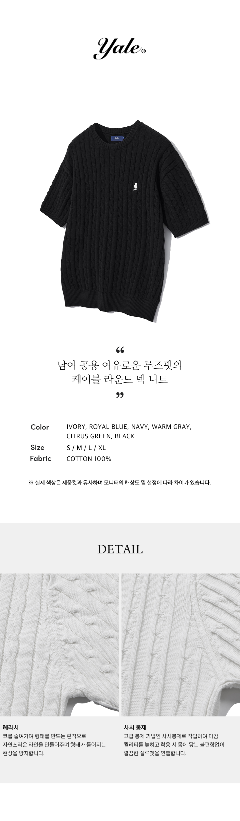 예일 헤리티지 댄 케이블 반팔 라운드 니트_블랙