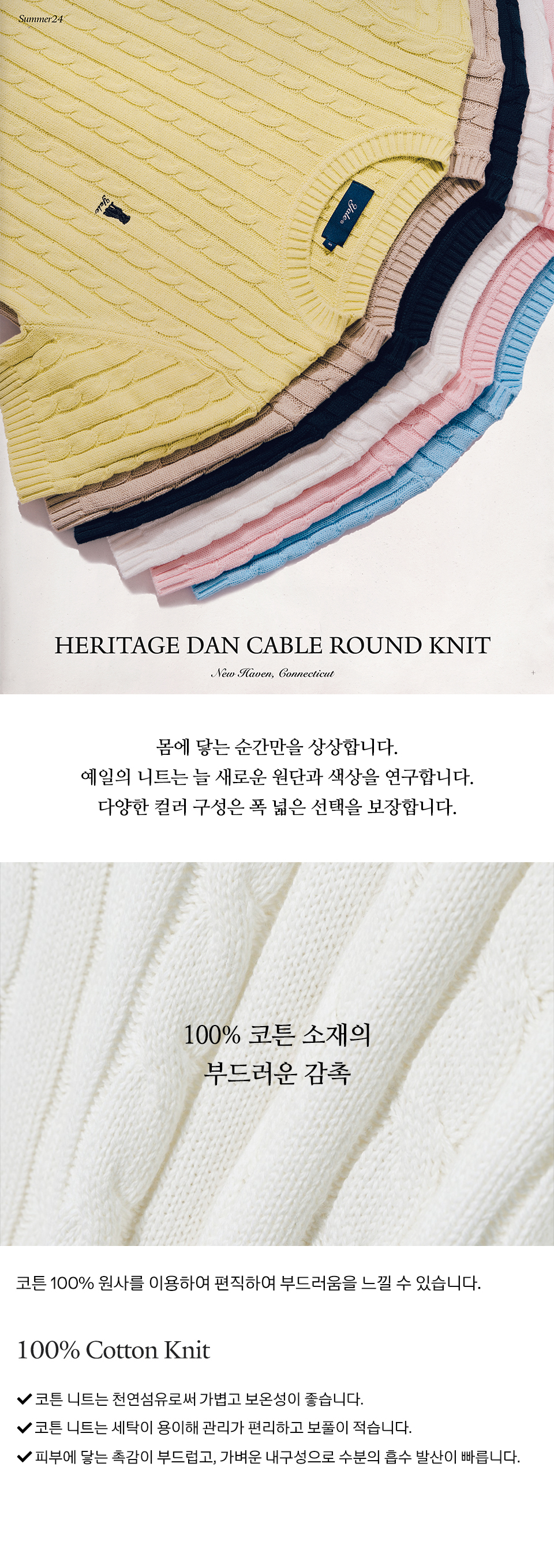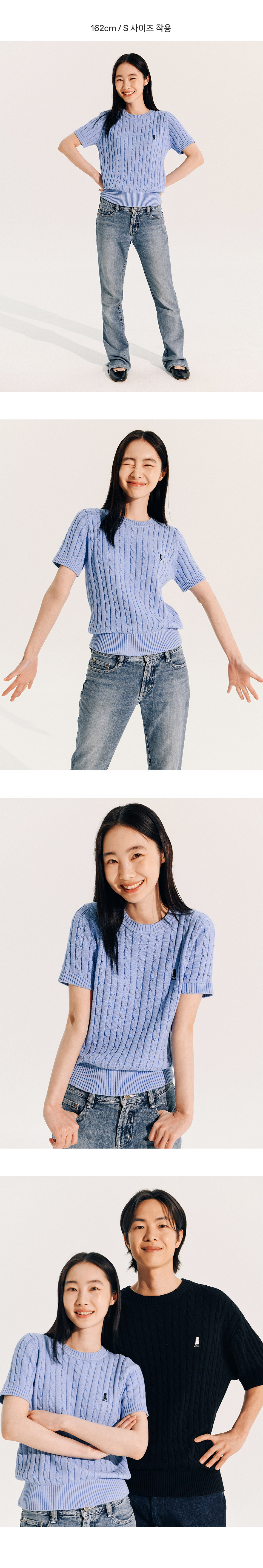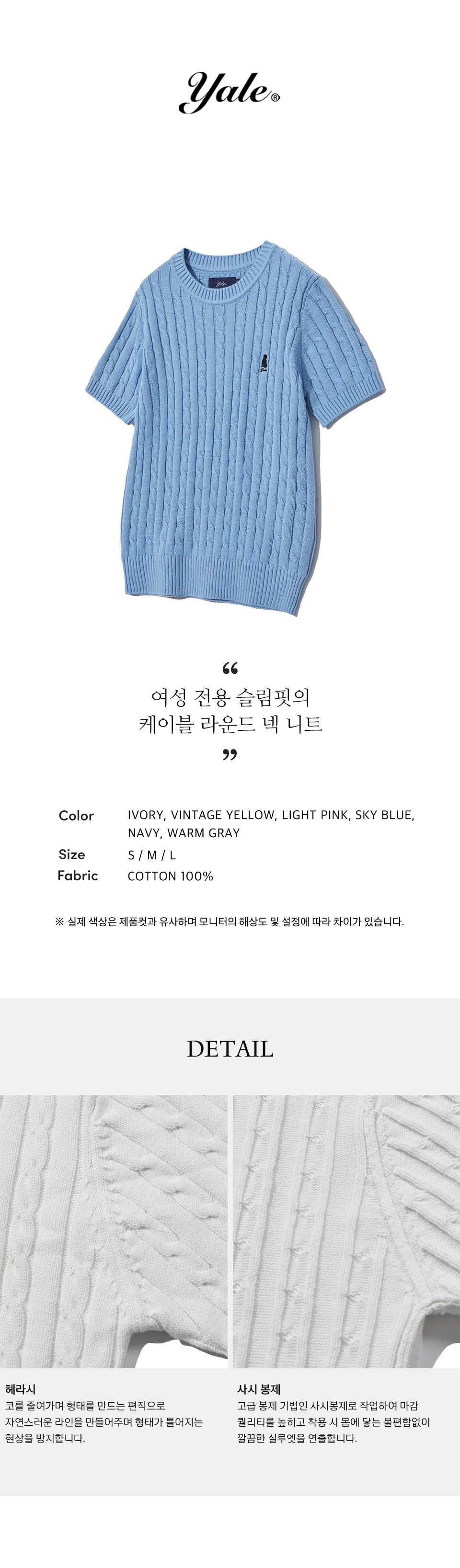 예일 우먼즈 헤리티지 댄 케이블 반팔 라운드 니트_스카이 블루