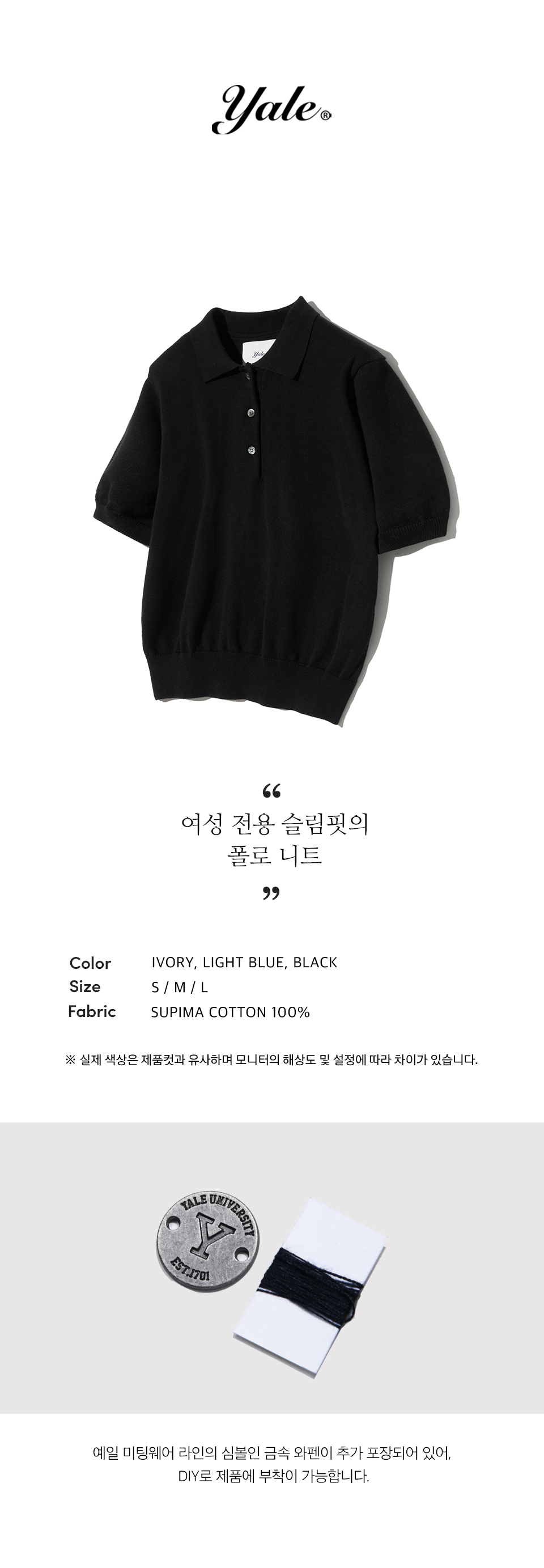 예일 우먼즈 수피마 코튼 반팔 폴로 니트_블랙