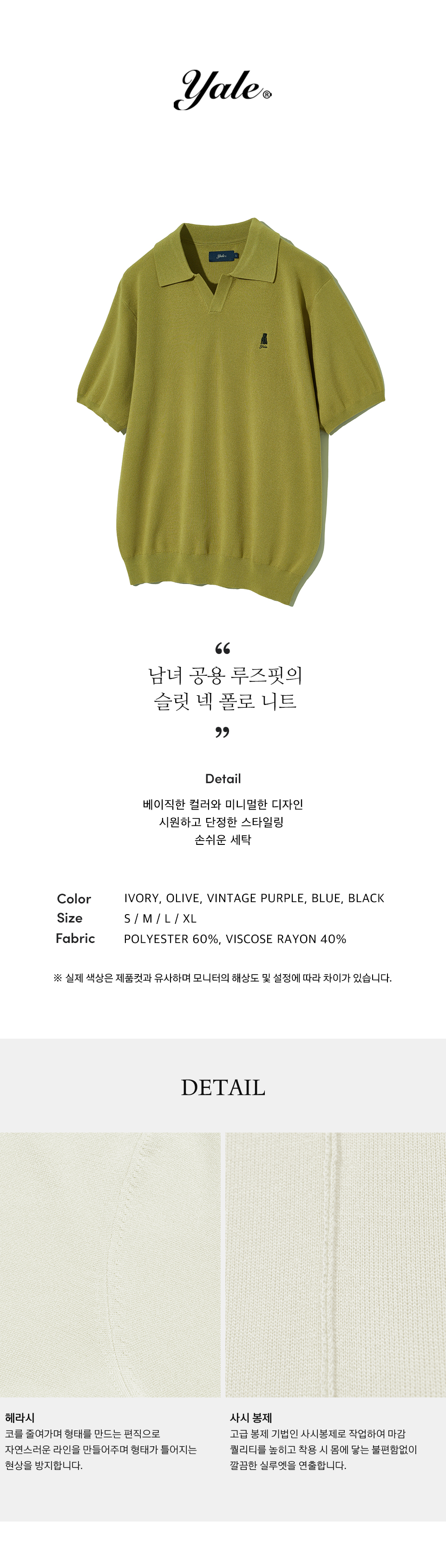 예일 컴포트 쿨 슬릿넥 폴로 니트_올리브
