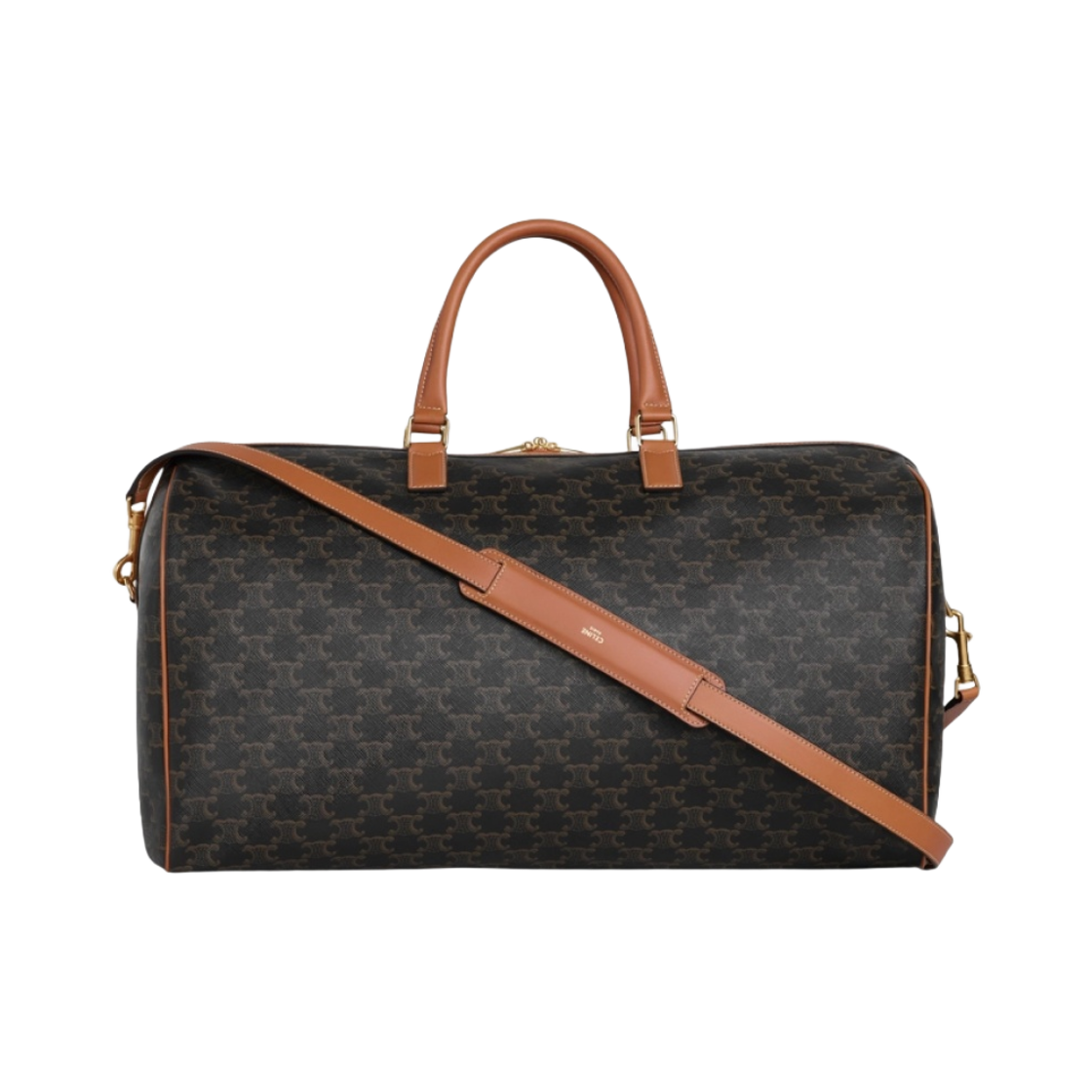 Celine Large Voyage Bag in Triomphe Canvas with Celine Print Tan