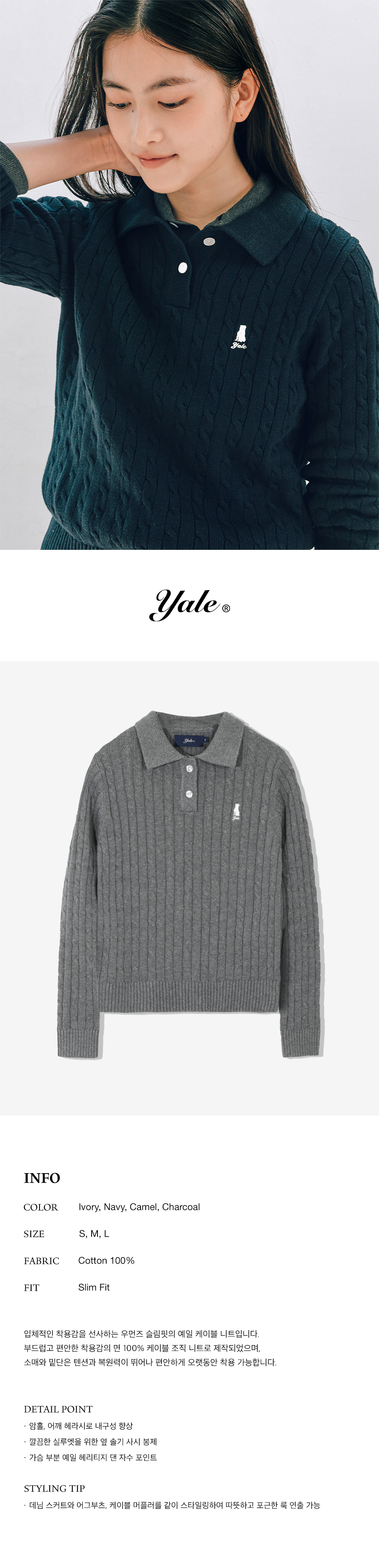 예일 우먼즈 케이블 폴로 니트_차콜