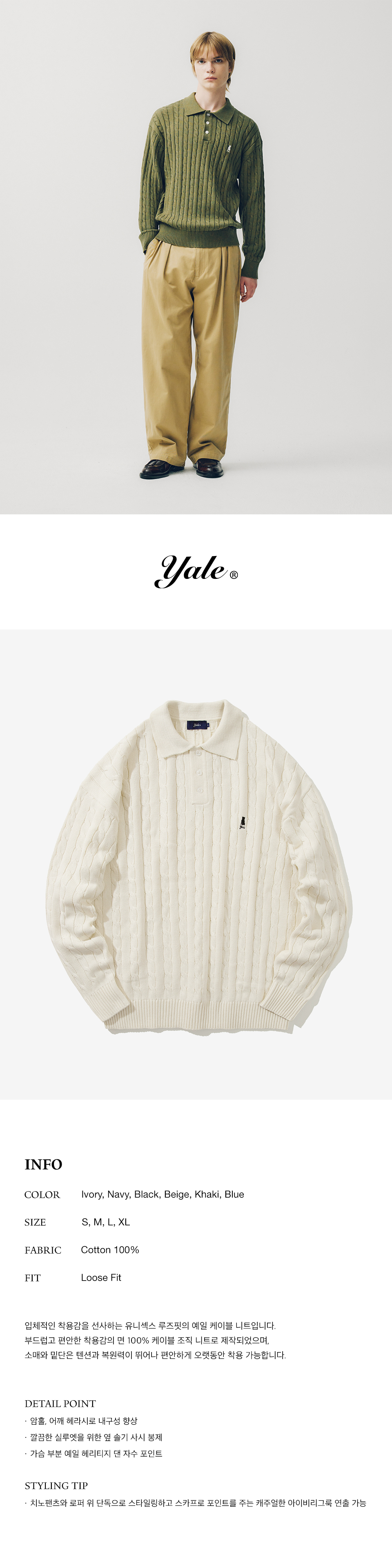 예일 케이블 폴로 니트_아이보리