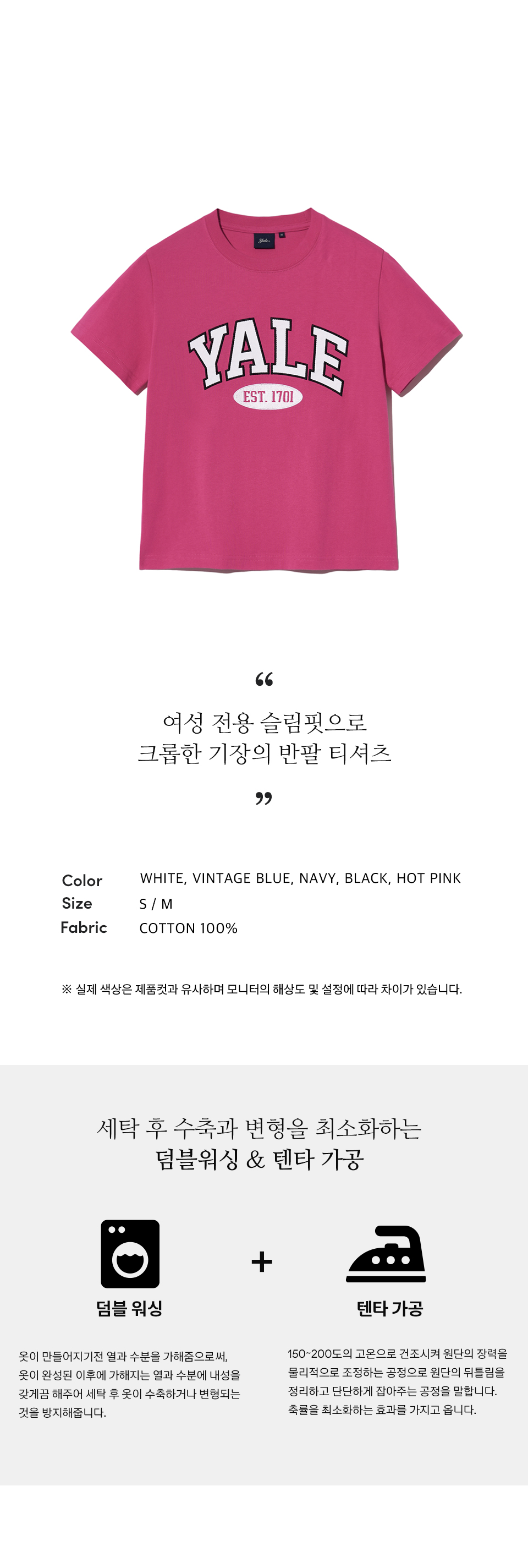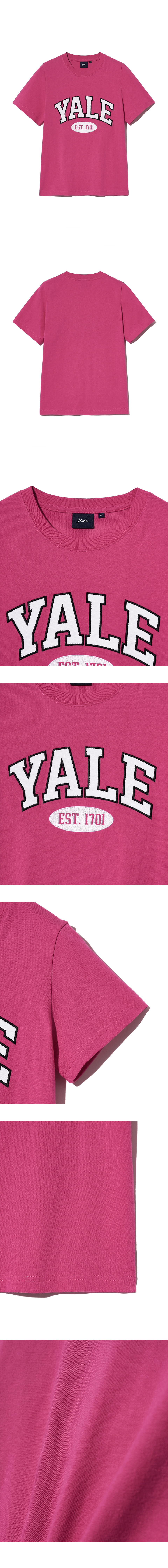 예일 우먼즈 투톤 아치 크롭 반팔티셔츠 핫핑크