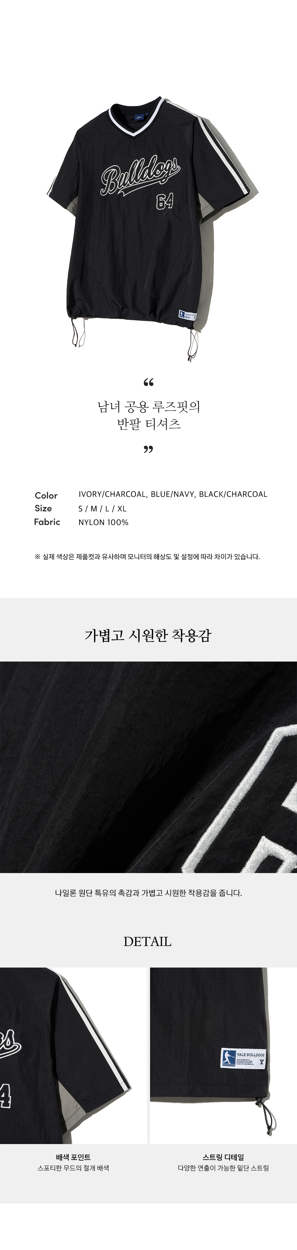 예일 베이스볼 나일론 숏슬리브_블랙/차콜