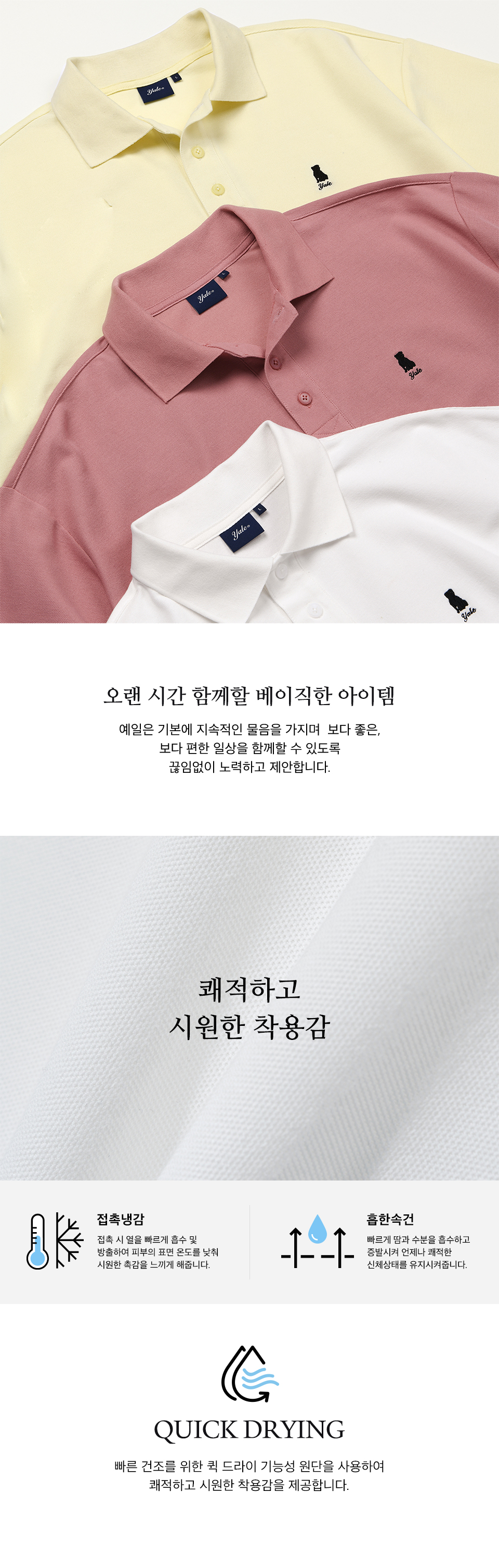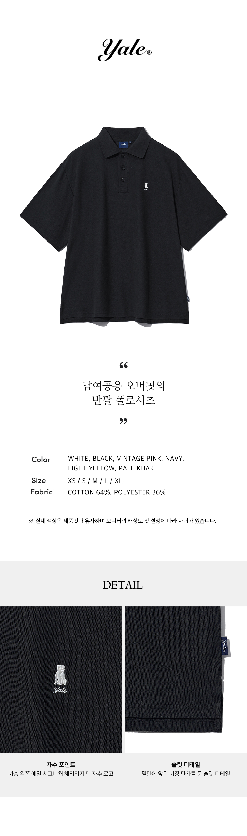 예일 오버사이즈 퀵 드라이 피케 폴로 셔츠_블랙