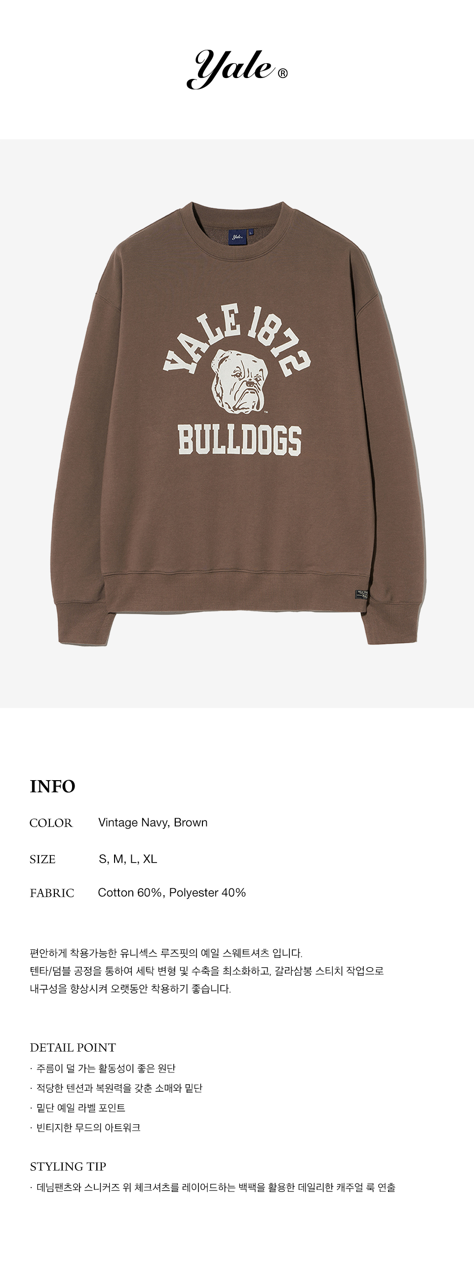 예일 1872 빈티지 불독스 스웨트셔츠_더스티 브라운