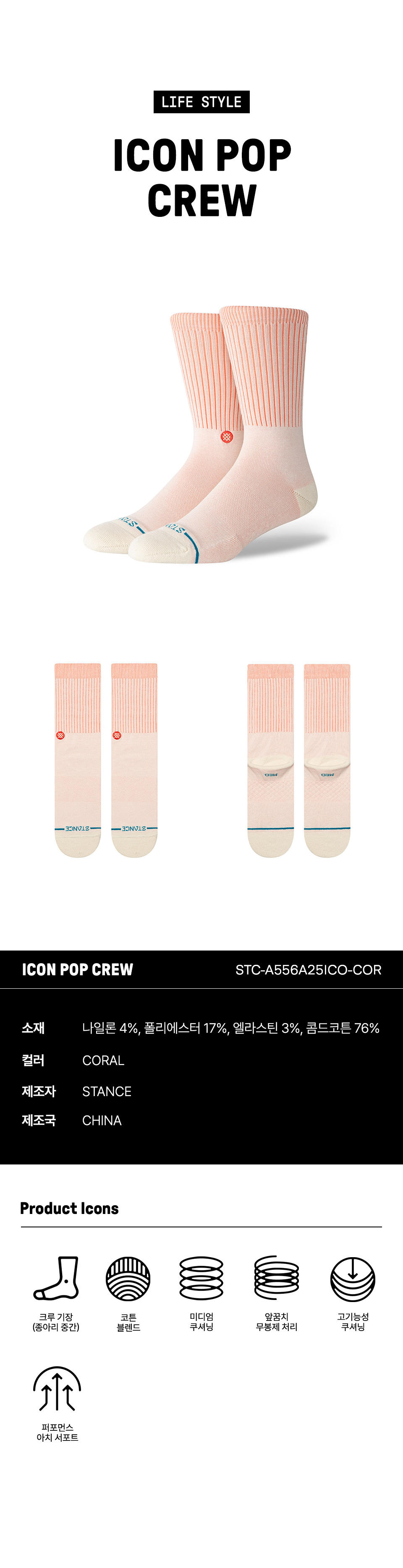 스탠스 유니섹스 아이콘 팝 크루