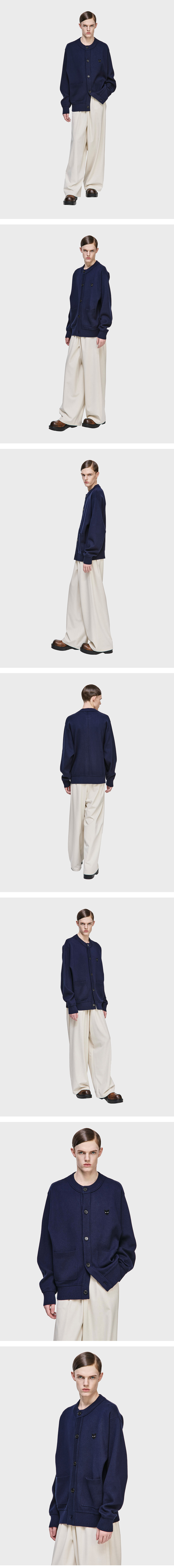 - 지제로 캐시미어 블렌드 라운드넥 가디건 - 캐시미어 울 코튼 혼방으로 따듯하고 광택감나는 원사 - 12GG로 탄탄하고 힘있는 조직의 니트 - 전면 "그레이 아이즈" 펜서 와펜 - 전면 아웃포켓 - 후면 조직 디테일 - 레이어드 된듯한 밑단, 소매단 디테일과 스카시 포인트 - 세미 오버사이즈 실루엣 - MADE IN CHINA