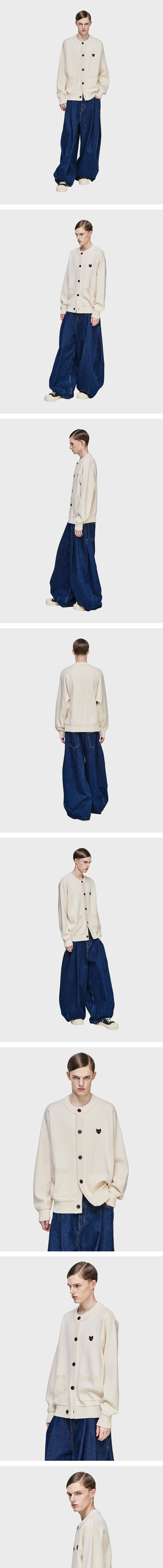 - 지제로 캐시미어 블렌드 라운드넥 가디건 - 캐시미어 울 코튼 혼방으로 따듯하고 광택감나는 원사 - 12GG로 탄탄하고 힘있는 조직의 니트 - 전면 "그레이 아이즈" 펜서 와펜 - 전면 아웃포켓 - 후면 조직 디테일 - 레이어드 된듯한 밑단, 소매단 디테일과 스카시 포인트 - 세미 오버사이즈 실루엣 - MADE IN CHINA