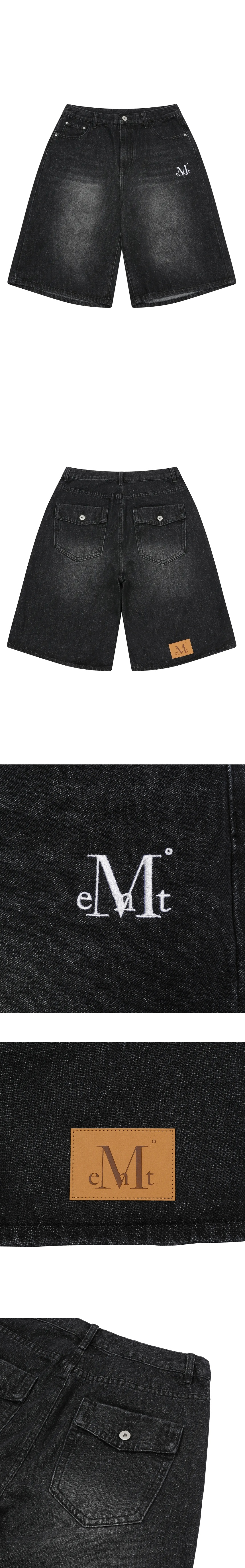 MUCENT Ronar Back Button Leather Point Bermuda Denim Pants Black