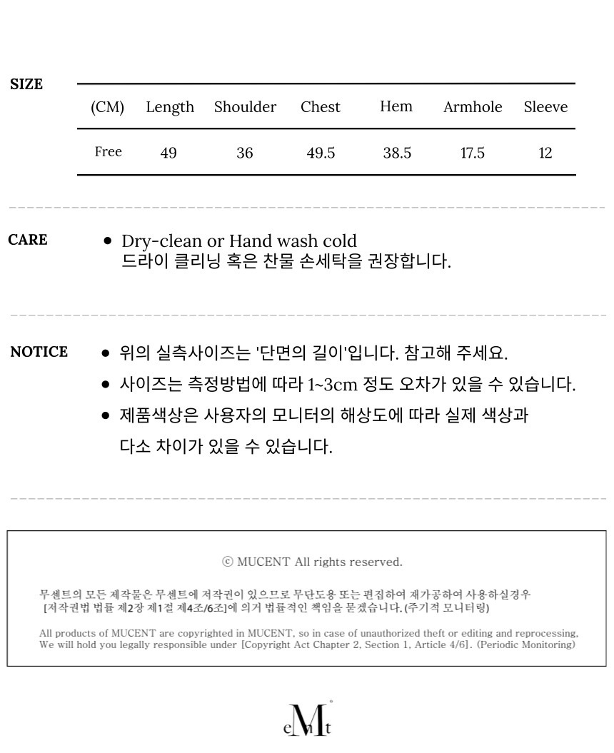 ┃Detail • 전면부 무센트 핫픽스 로고 디테일 • 슬림한 아웃핏 연출 • 착용 시 피부에 부드럽게 밀착되는 터치감 • 라운드 넥 라인 • 다양한 하의와 매치 가능한 데일리 아이템 • 케인 셋업 핫픽스 로고 로우라이즈와 코디 가능 ┃Material : Polyester 100% ┃Care : Dry cleaning - 무센트는 말기의 행성인 이 지구에서 지속 가능한 옷들을 고민합니다. 우리는 신념을 소비하는 미닝아웃을 지지합니다.