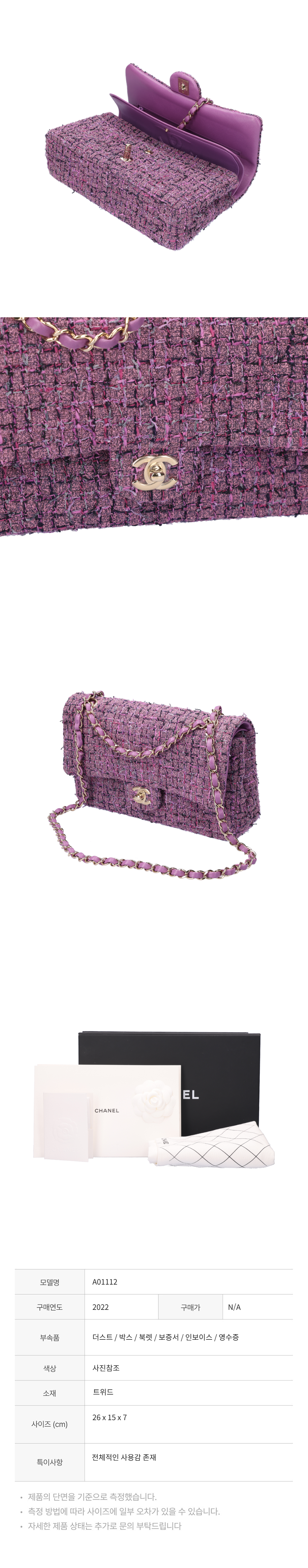 샤넬 A01112 클래식 미디움 플랩백 트위드 금장