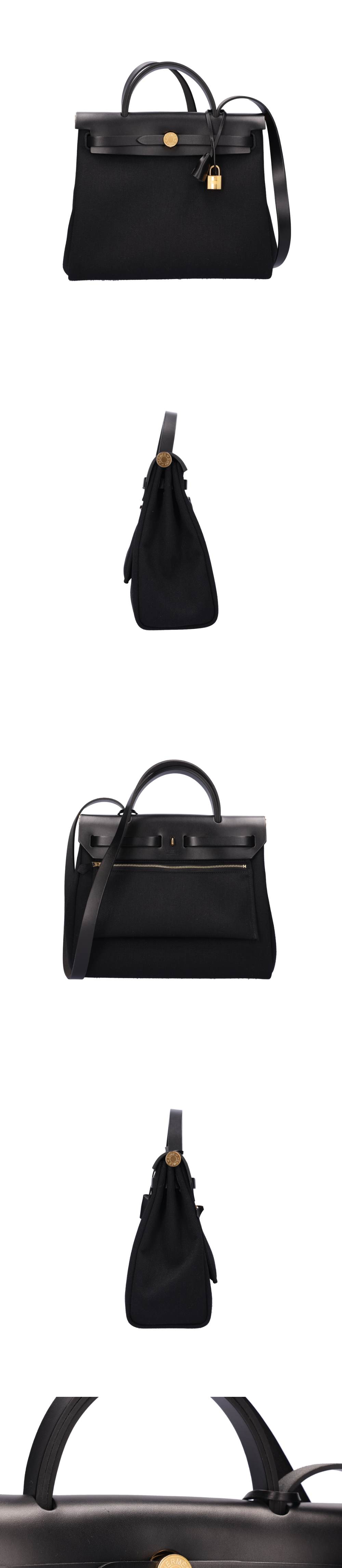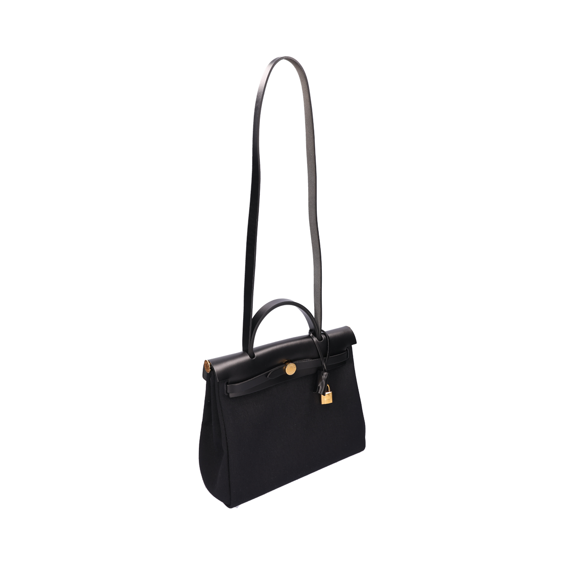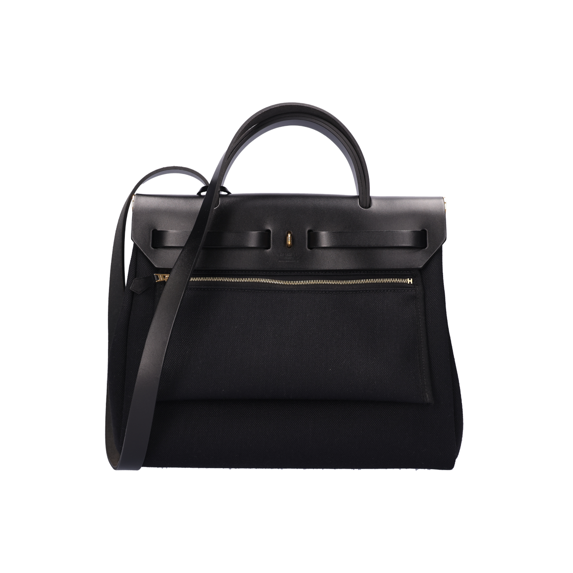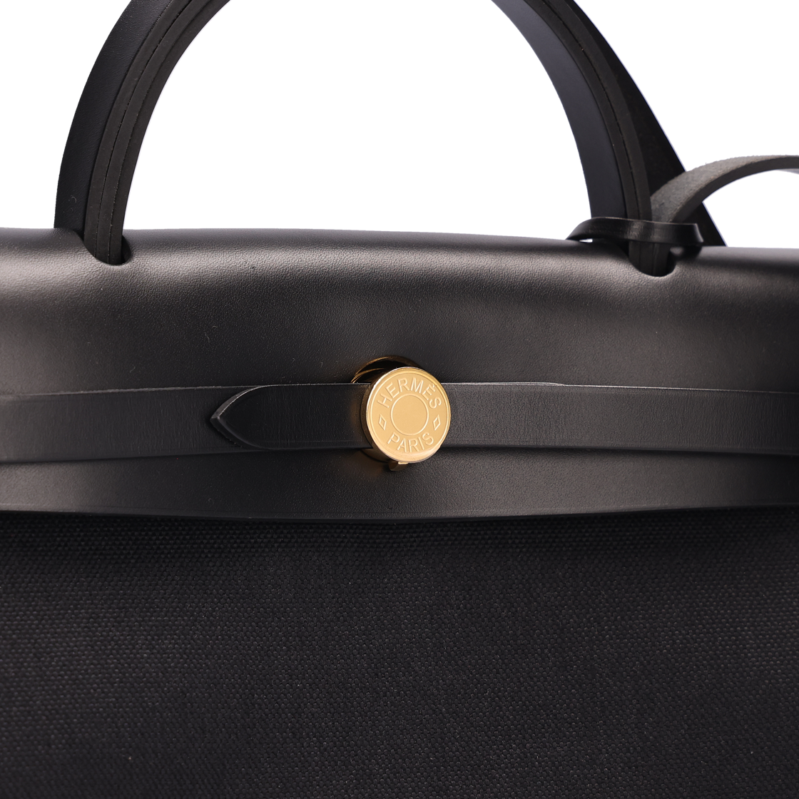 [A등급] Hermes Vintage Herbag Zip 31 Bag Canvas Noir Gold U Engraving
