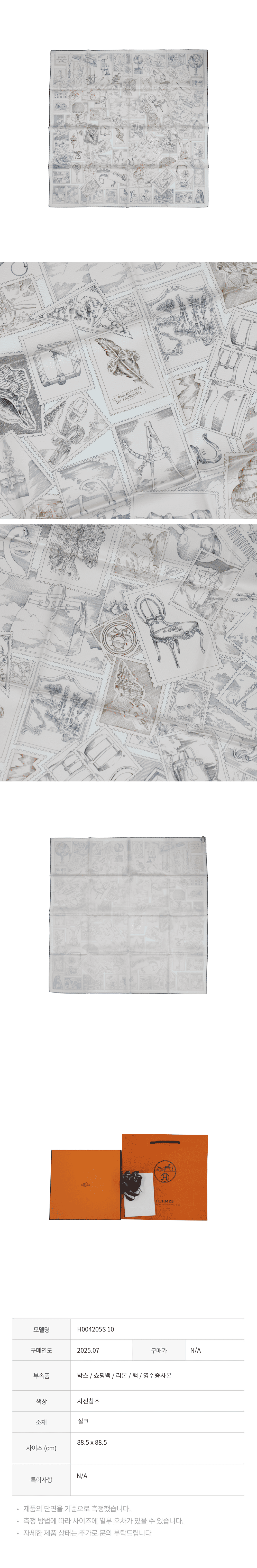에르메스 H004205S 르 필라뗄리스트 뒤 포부르 스카프 90 로즈 빨 그리 블랑