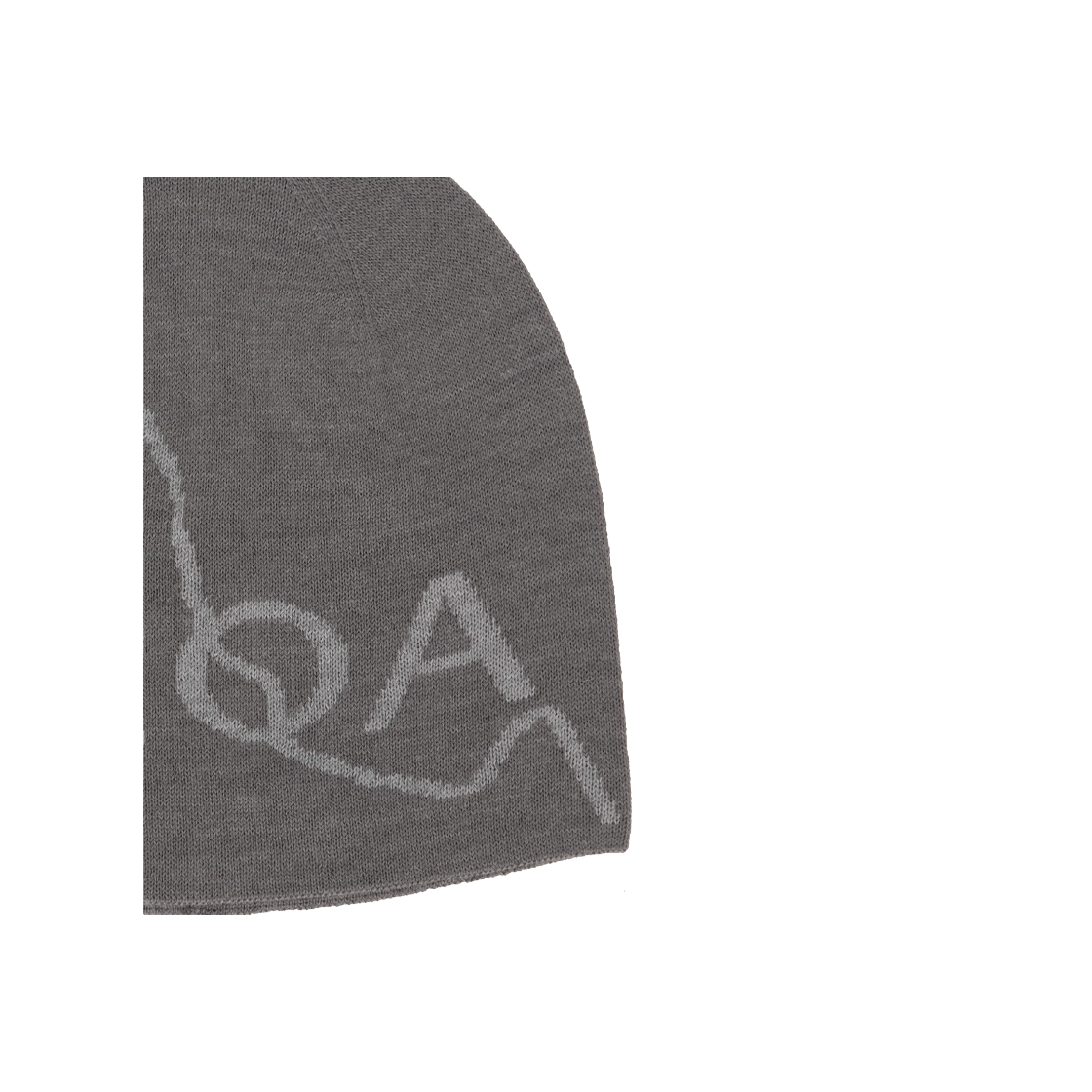 그레이 컬러에 대비감 있는 로고가 멋스러운 로아 로고 울 비니 그레이 컬러입니다. - 메리노 울, 폴리에스터 혼방 소재 - 대비감 있는 니트 로고 디자인 - 울 섬유의 자연스러운 흡습 기능