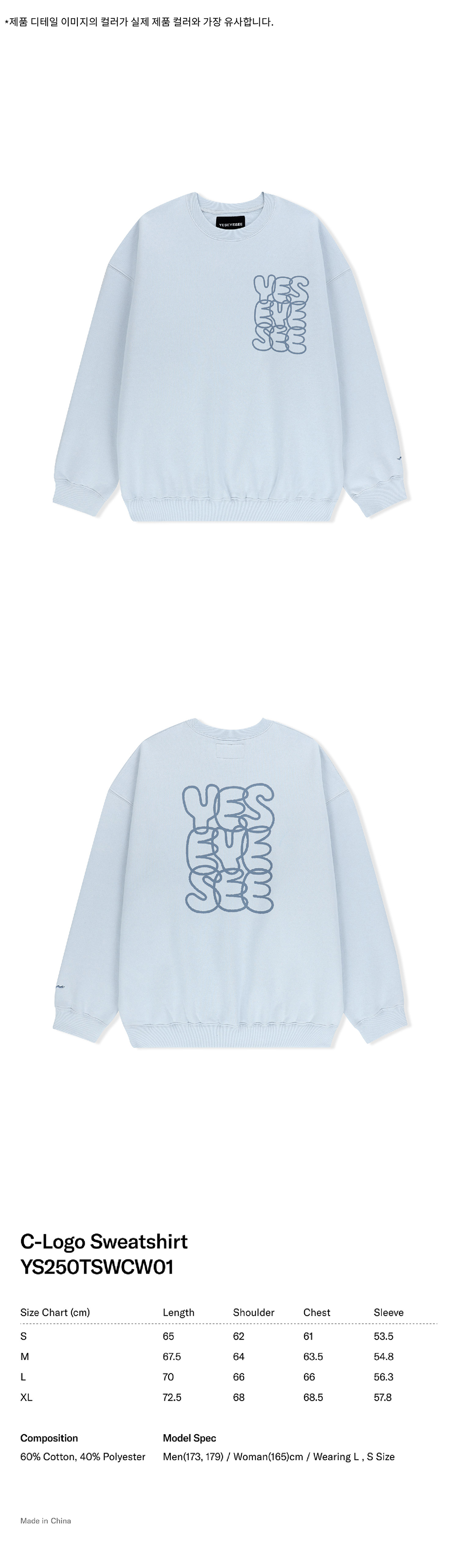 예스아이씨 씨로고 스웨트셔츠 슬레이트