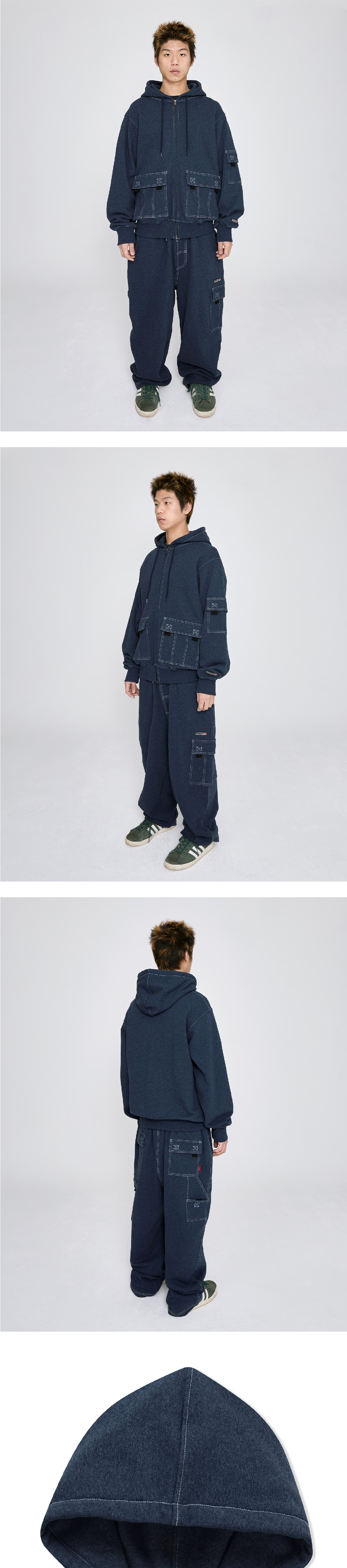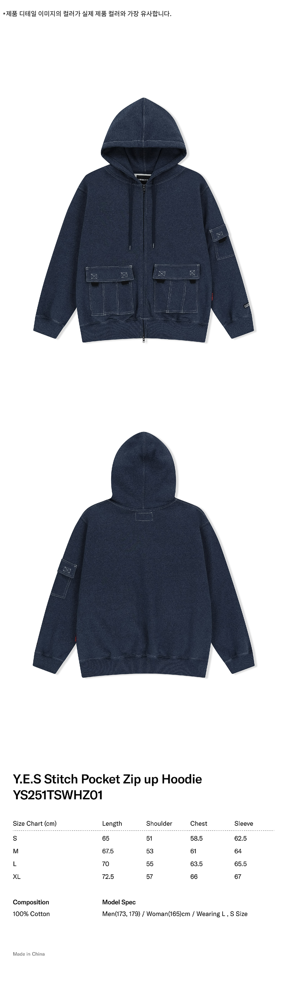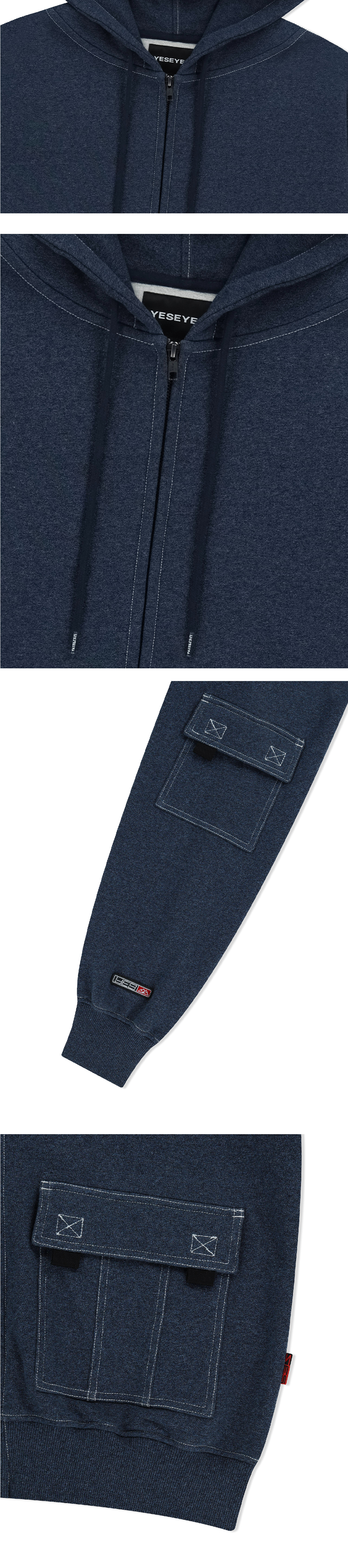 예스아이씨 예스 스티치 포켓 집업 후디 네이비