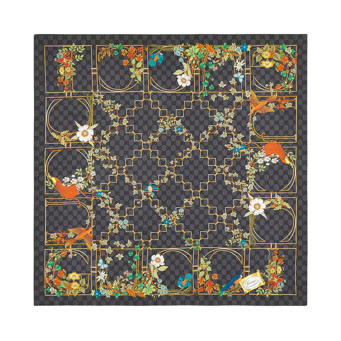 (W) Gucci Printed Silk Twill Carre Black