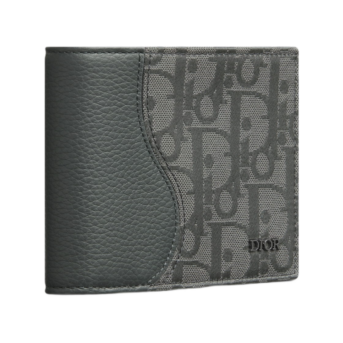 디올 새들 바이폴드 월렛 그레인드 카프스킨 마르퀘트리 앤 디올 오블리크 캔버스 앤트러사이트 그레이
