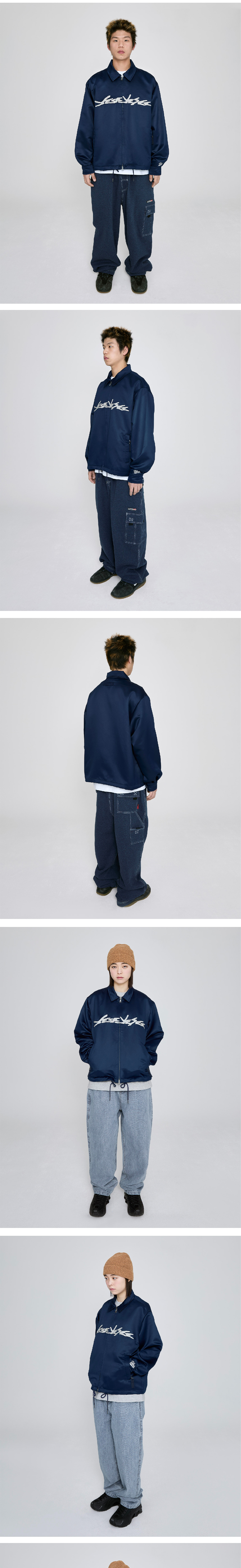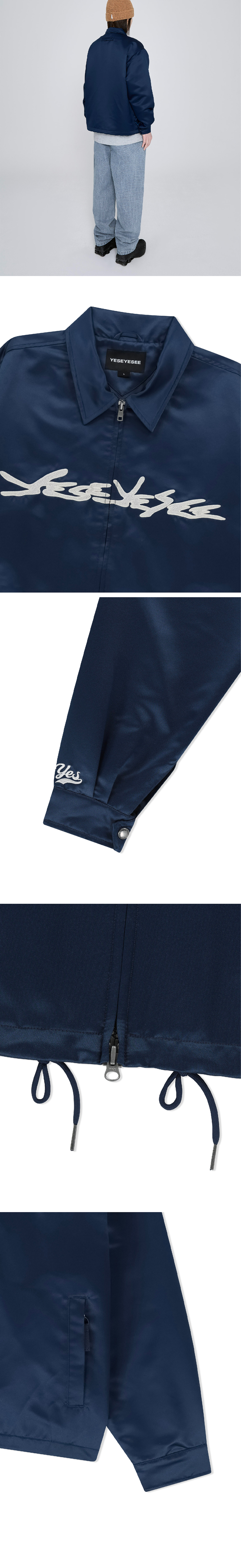 YESEYESEE Chain Stitch Logo Coach Jacket Navy