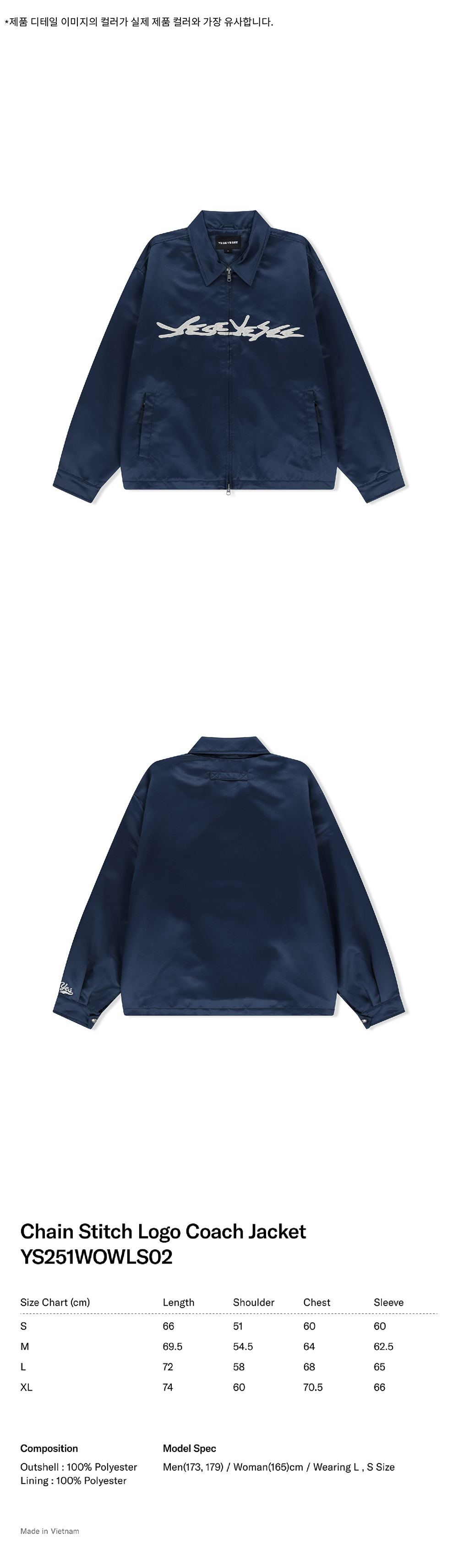 예스아이씨 체인 스티치 로고 코치 재킷 네이비